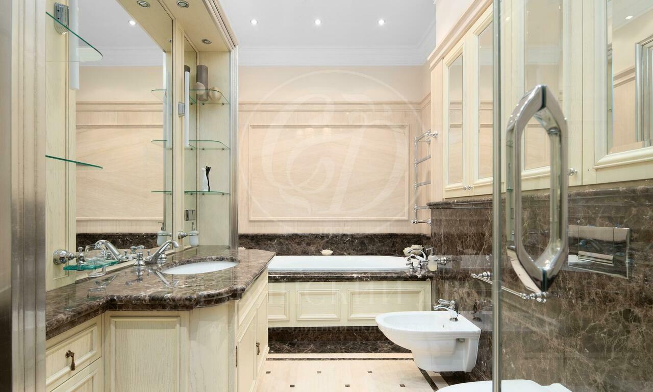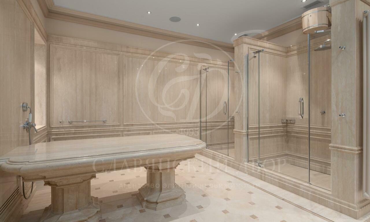 Цокольный этаж: лифт, зона отдыха с мини-кухней, SPA-зона с сауной, массажной, раздевалкой, с/у, сейфовая комната, сезонная гардеробная, постирочная, зона для персонала (2 спальни, кухня, c/у, свой вход), технические помещения.