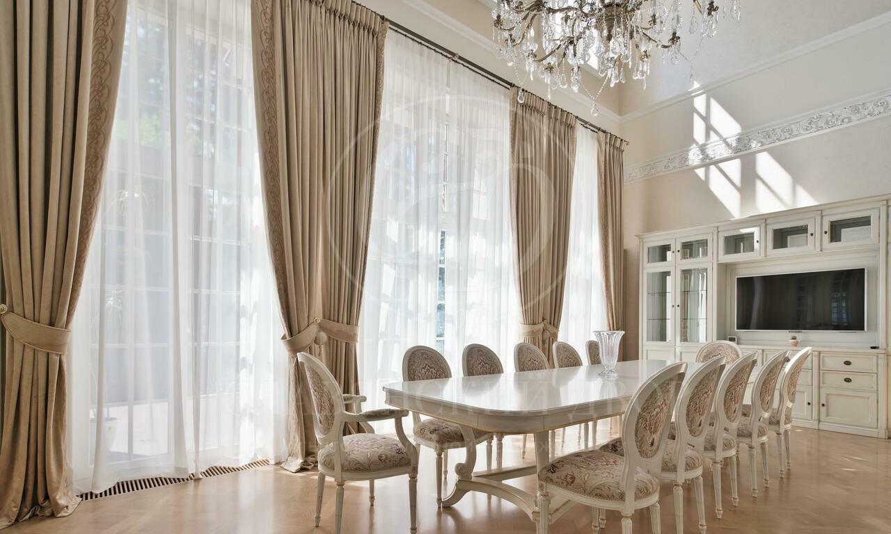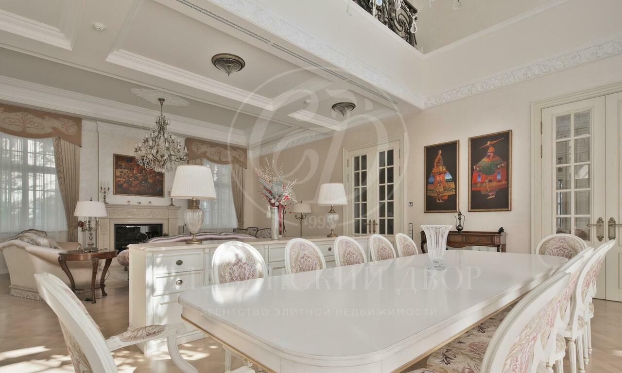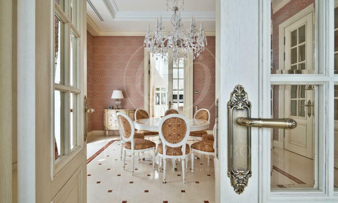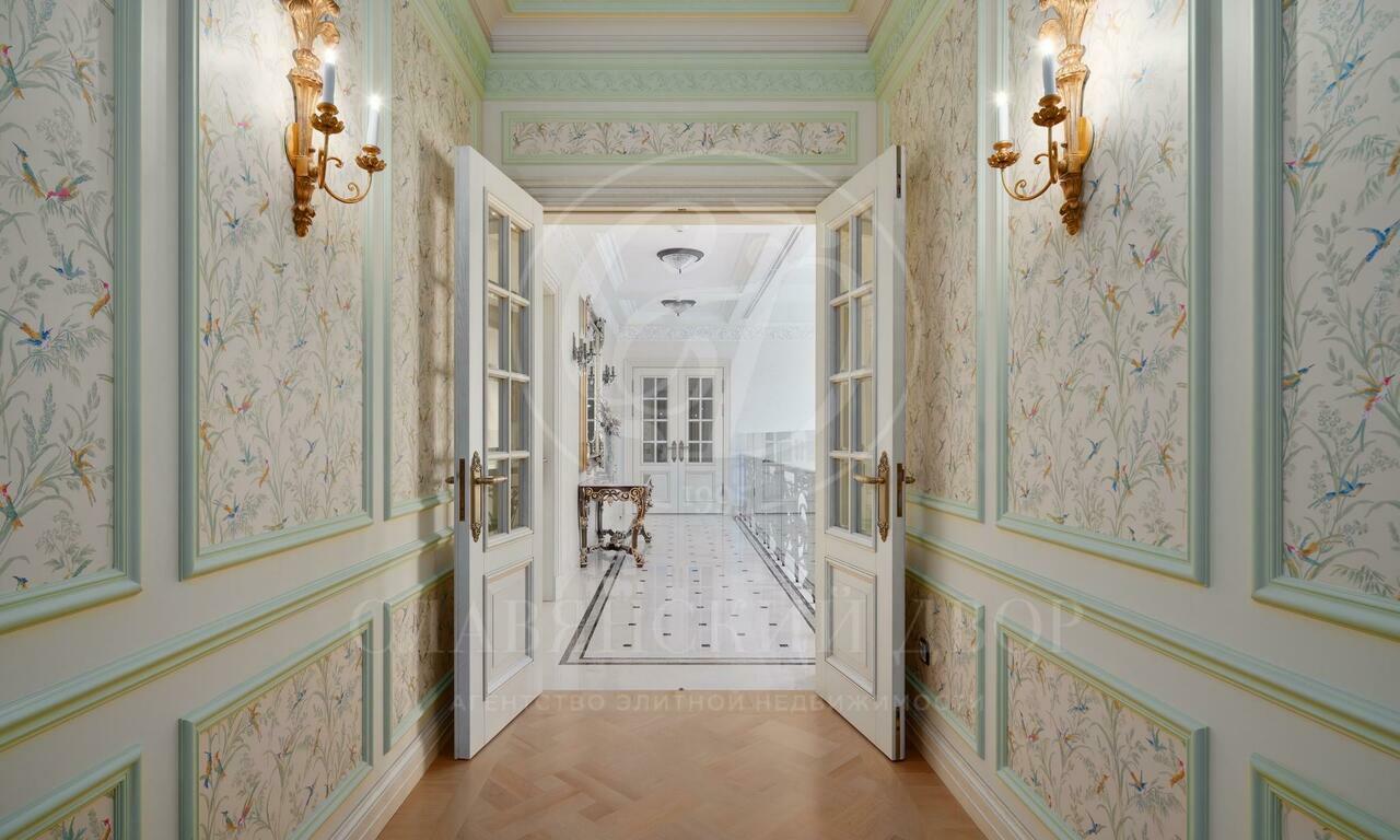 1 этаж: холл, гостиная с камином и вторым светом, столовая, кухня, прихожая, гардеробная, с/у, лифт; отдельное крыло с собственным входом: гостевая зона с прихожей, гардеробной, кухней, столовой, гостиной, спальней с с/у и гардеробной.