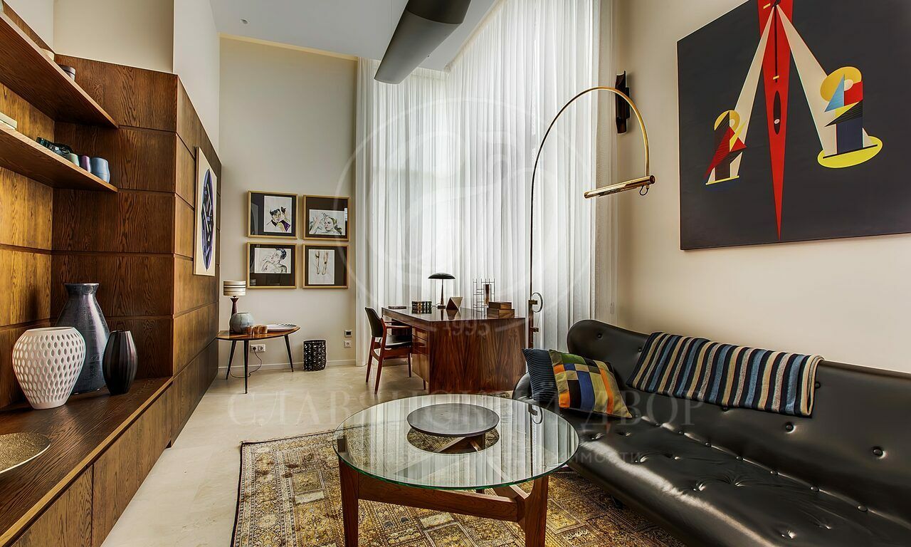 1 этаж: просторный холл, гостевой с/у, кабинет с камином, 2 спальни с гардеробными и ванными комнатами (из одной свой отдельный выход на открытую веранду), гостиная со вторым светом, кухня, столовая, винная комната.