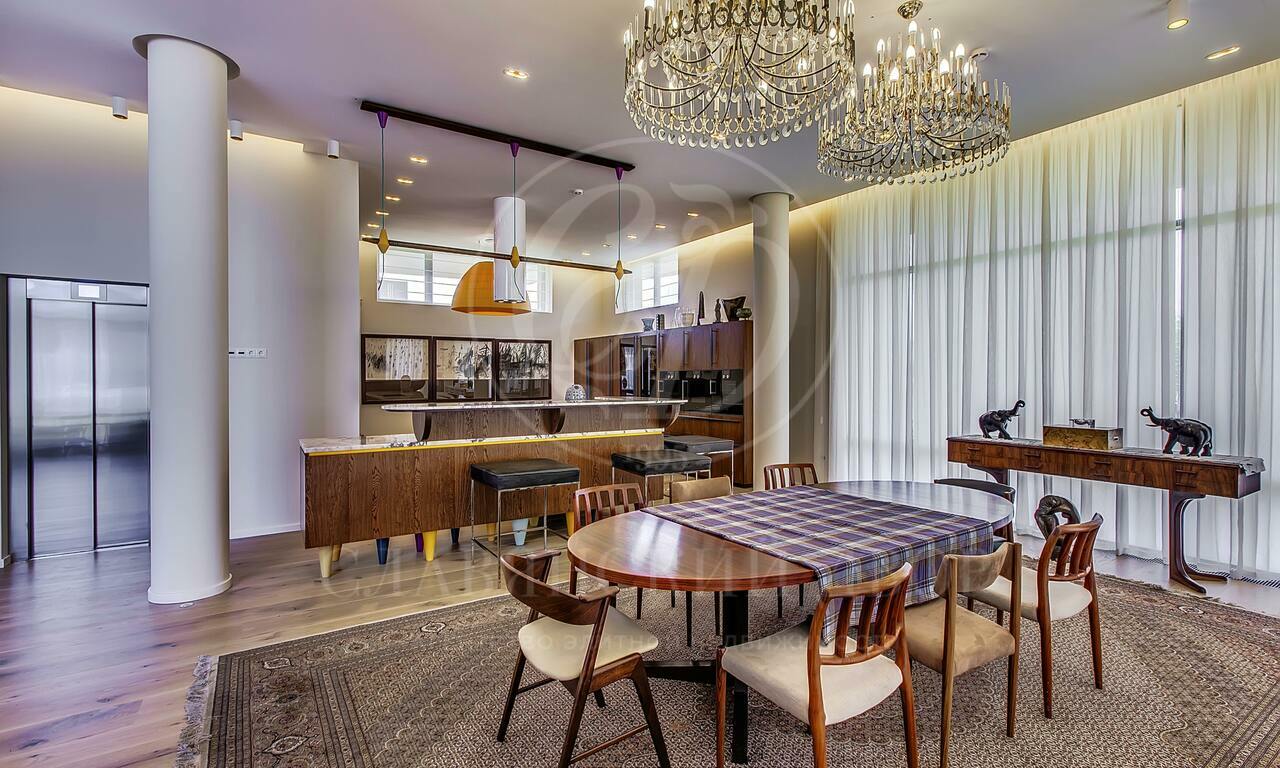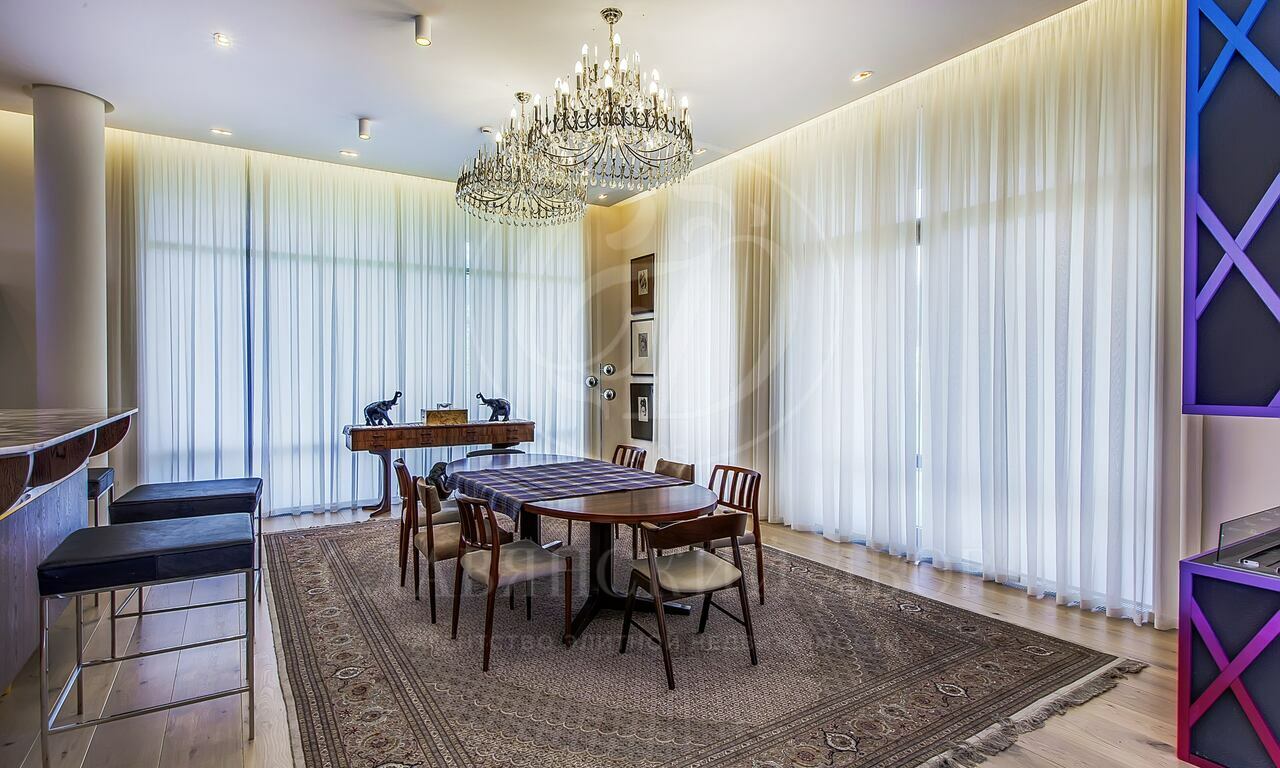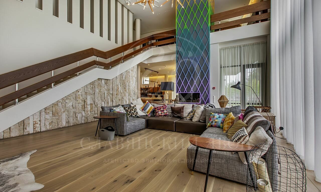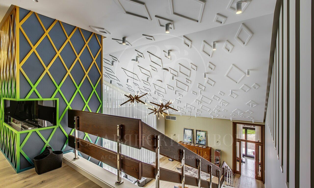 Предлагаем Вам познакомиться с удивительным примером современной архитектуры и жемчужиной стиля Hi-tech — интересным домом, удобно расположенным в 7 км по Новорижскому шоссе. Дом влюбляет в себя с первого же взгляда: динамичное, яркое сочетание прямых линий и панорамных, больших окон, смелые пространственные решения и благоустроенный участок создают атмосферу высокотехнологичной роскоши, которая лучше слов говорит о своем владельце.
