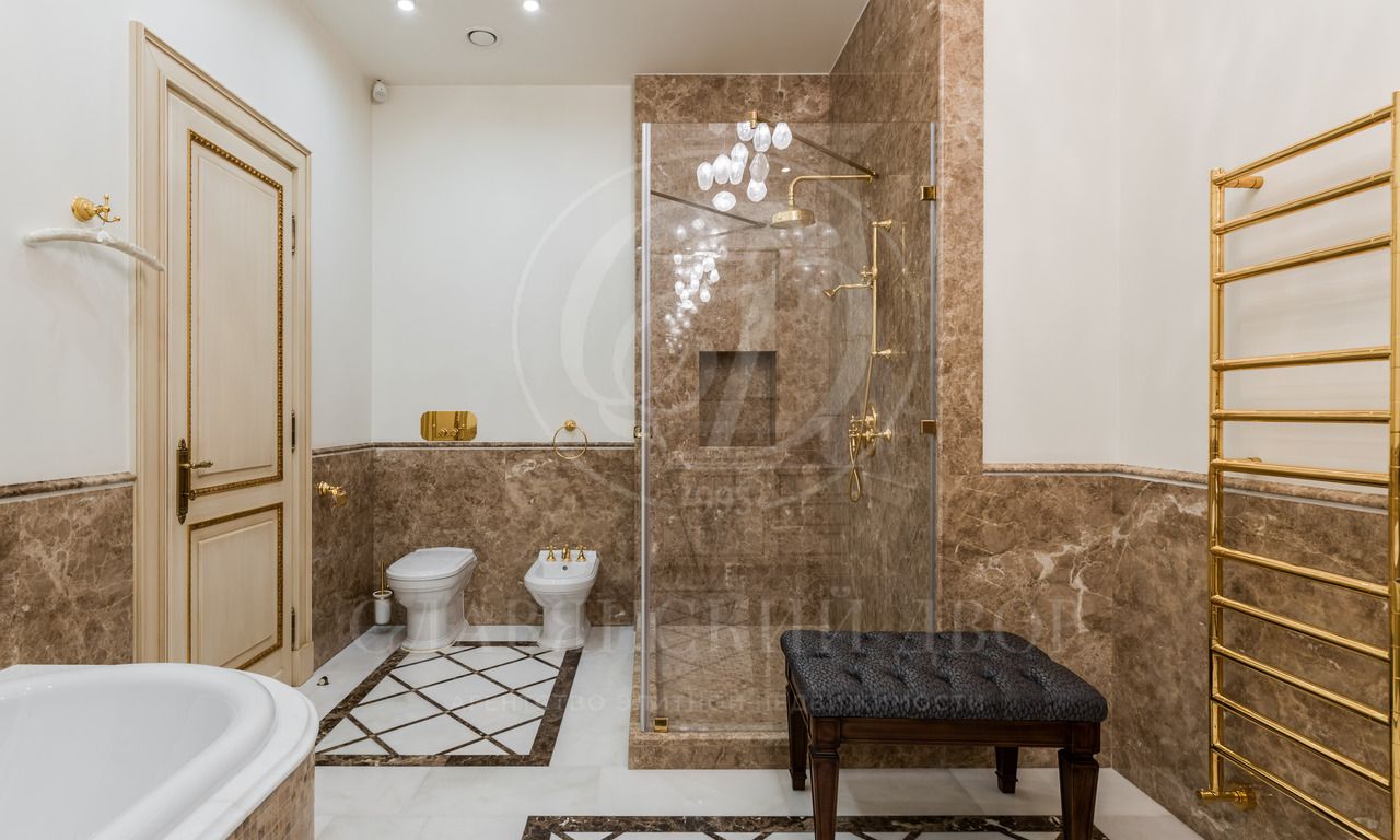 2 этаж: основная спальня с гардеробной и ванной комнатой, терраса, 3 спальни с ванными комнатами и гардеробными.