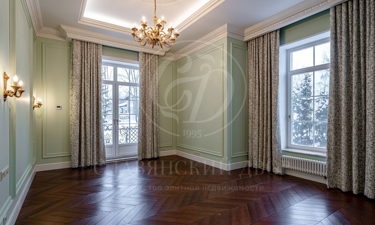 На продажу предлагается светлый коттедж под отделку на лесном участке в поселке Успенка-21 на Рублево-Успенском шоссе. Планировкой предусмотрены 5 спален с с/у, на 1 этаже — кухня, столовая с выходом на веранду, гостиная, кабинет (может быть гостевая спальня). Также предусмотрена SPA-зона с сауной, большая открытая терраса. На втором этаже — 4 спальни с ванными и гардеробными комнатами.