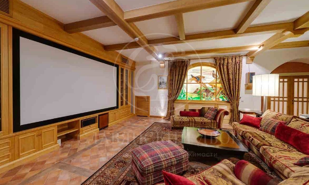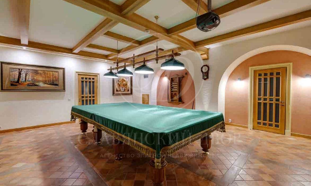 Цокольный этаж: холл, бильярдная и кинозал, с/у, 2 большие гардеробные для хранения сезонной одежды, холодильник для шуб, кладовая, постирочная, кладовая, винная комната, технические помещения.