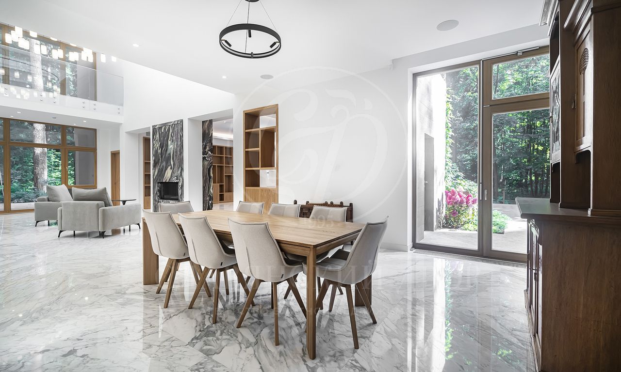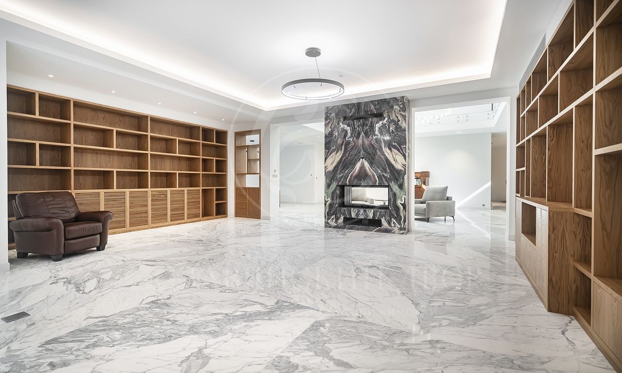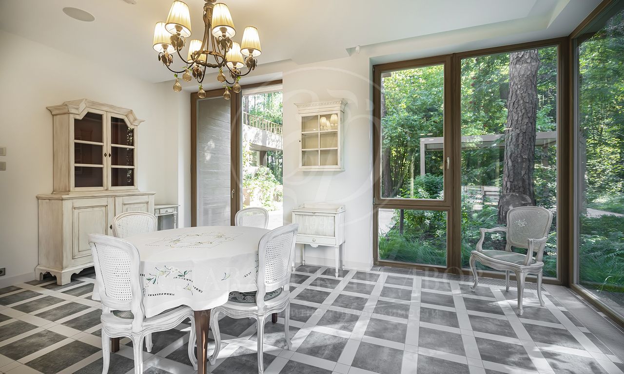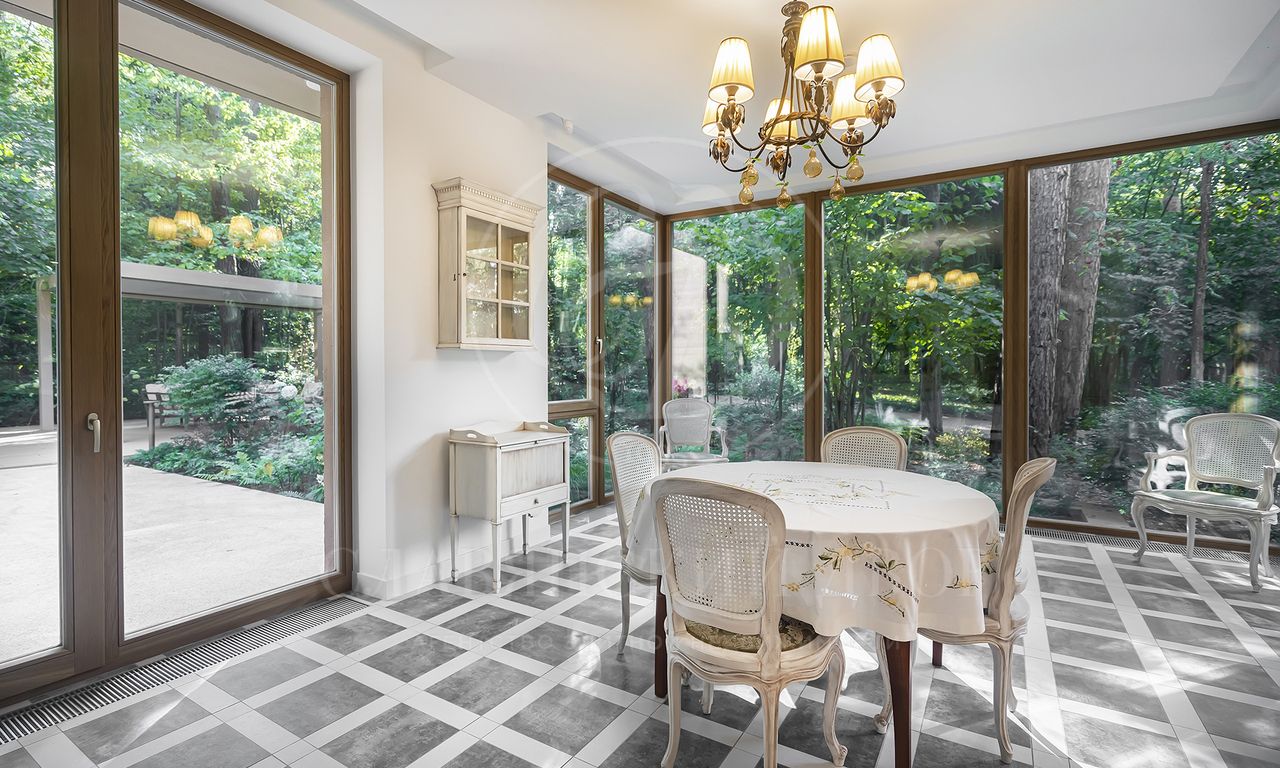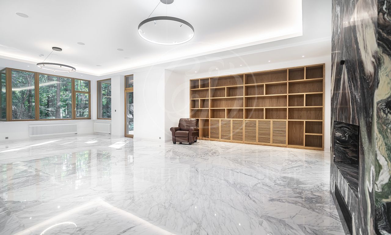 1 этаж: прихожая, холл, гардеробная, с/у, гостиная с камином, зимний сад, столовая, кухня, терраса, бассейн, сауна, хамам, душ, спальня, ванная комната.