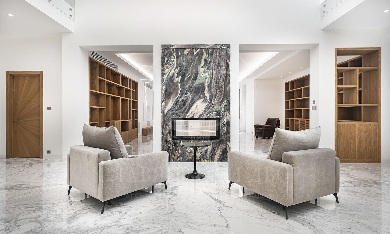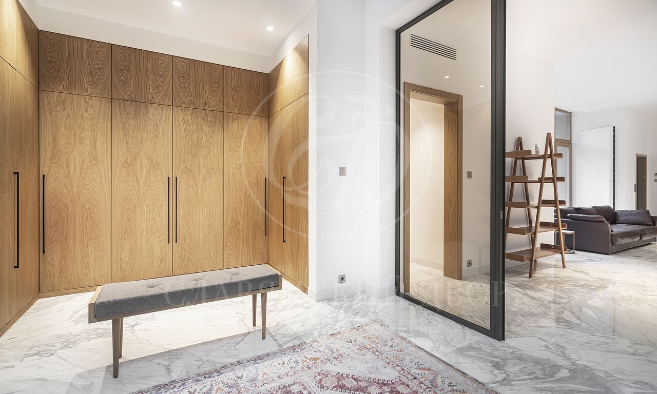 2 этаж: холл, хозяйская спальня с ванной комнатой и гардеробной, 4 спальни, 4 гардеробные, 2 ванные комнаты, терраса.