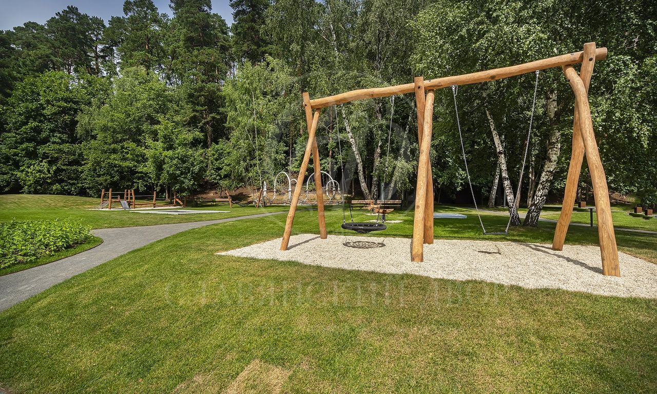 На территории поселка расположены госдачи и частные дома. Участки поселка полностью лесные и очень живописные.