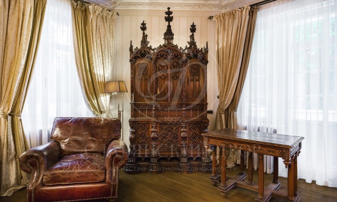 Внутреннее убранство усадьбы соответствует его архитектуре: дом наполнен антикварными предметами интерьера, лепниной ручной работы, специально подобранные для этого дома дубовые полы, старинный камин, множество деталей было создано или привезено индивидуально под этот проект. А создание скульптур Грейхаундов, охраняющих вход в дом, имеет свою удивительную легенду…