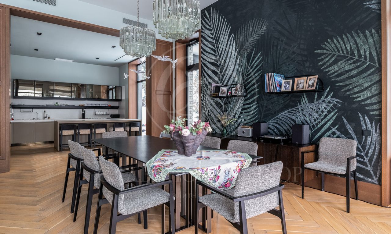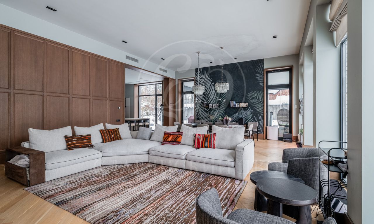 На продажу предлагается дом под ключ в элитном коттеджном поселке Раздоры-2 на Рублево-Успенском шоссе. В доме выполнен дизайнерский ремонт, грамотная планировка предполагает наличие 8 спален с с/у, просторной гостиной, SPA-зоны с бассейном и сауной. Также есть блок для персонала с отдельным входом. На участке выполнен ландшафтный дизайн, гараж на 2 м/м в контуре дома.