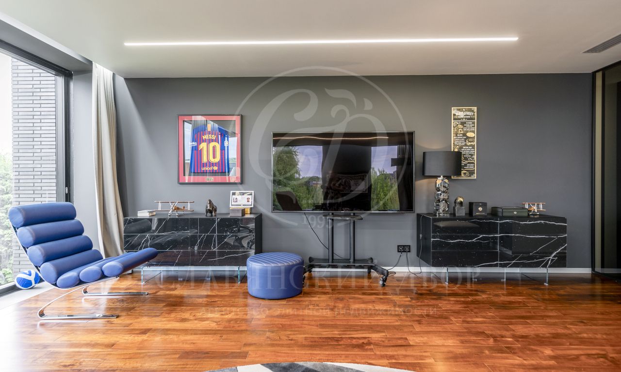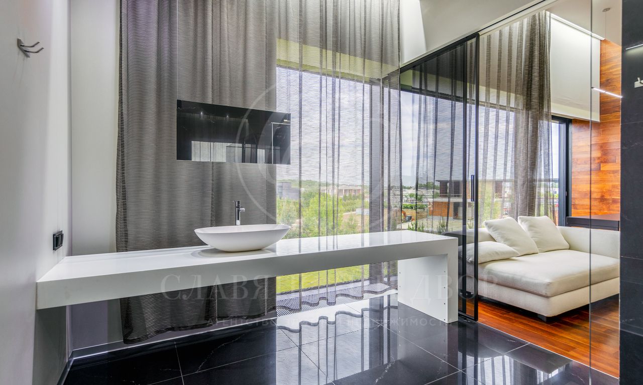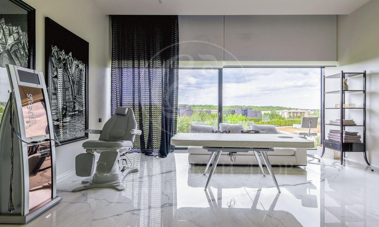 3 этаж: мастер-блок со спальней, кабинетом и ванной комнатой, салон красоты, гостевая спальня, с/у, душевая, домашний кинотеатр.