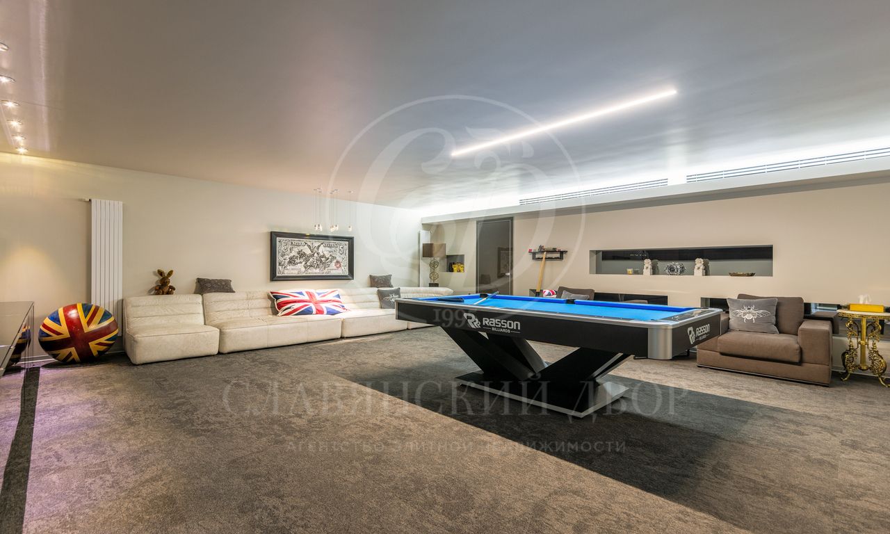 Цокольный этаж: бильярдная, постирочная-гладильная, комнаты свободного назначения, кладовые, санузел, котельная с отдельным выходом