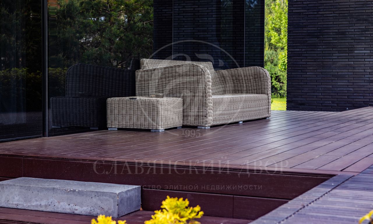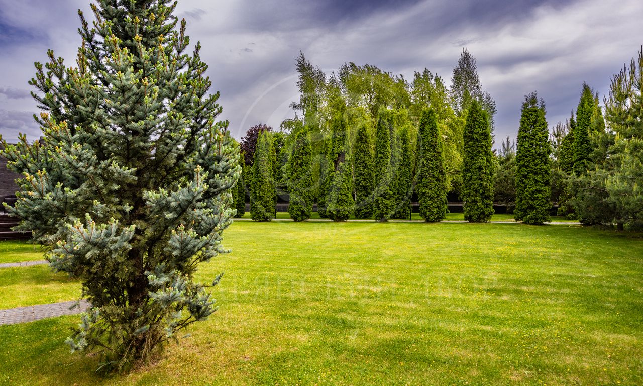 Дом расположен на участке общей площадью 50 соток. Участок приватный, огорожен живой изгородь, выполнен ландшафтный дизайн.