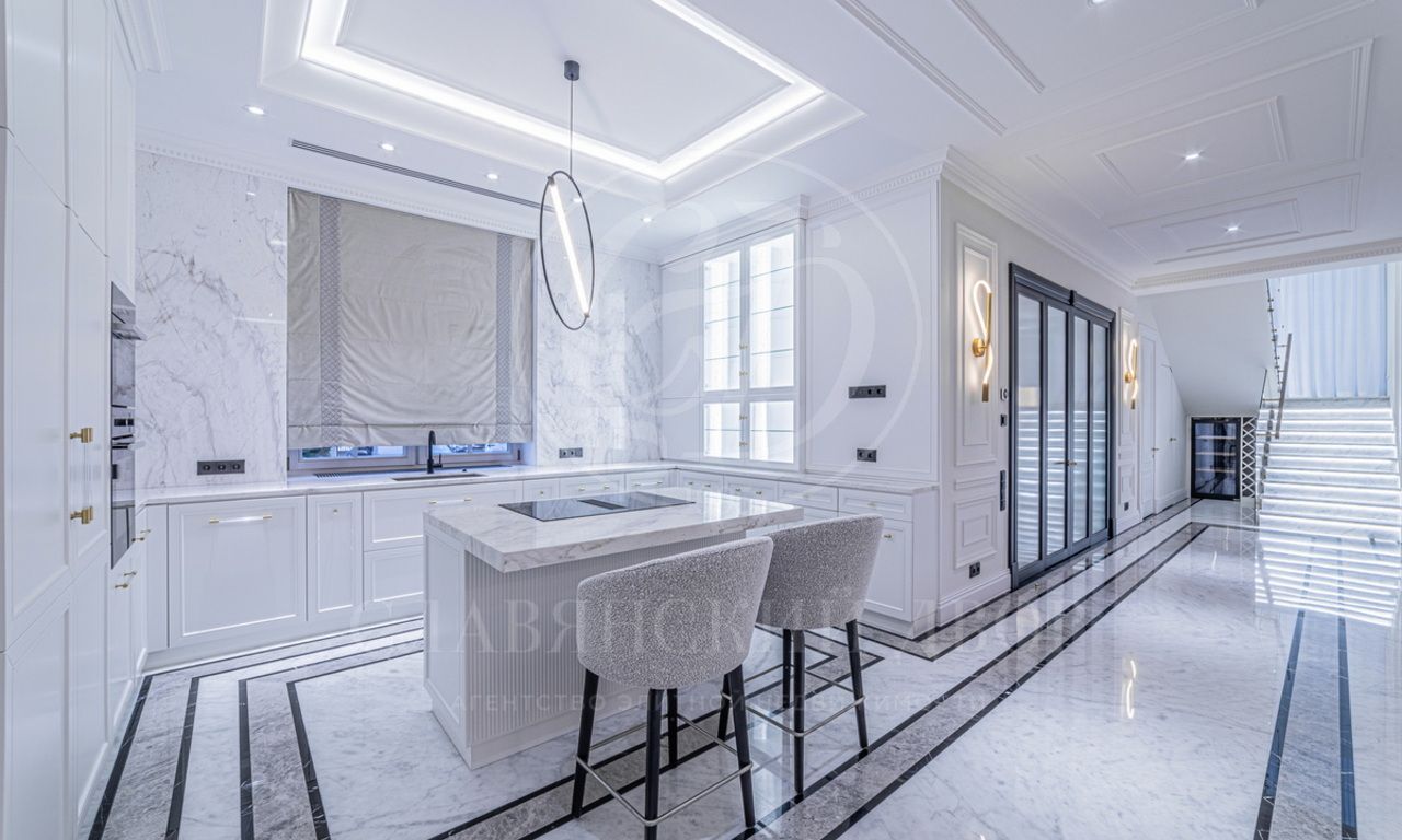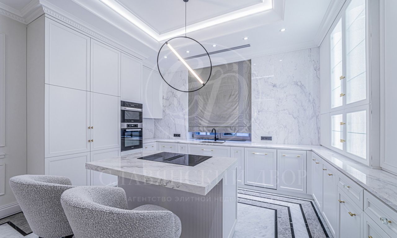 В доме выполнен дизайнерский ремонт в современном стиле. В отделке использовались натуральные материалы (мрамор, дерево).