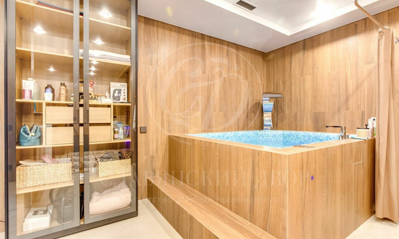 Эксклюзивный дизайнерский ремонт поражает своим великолепием и продуманностью каждой детали. Интерьер дома выполнен в мягких благородных тонах, которые создают атмосферу спокойствия и гармонии.