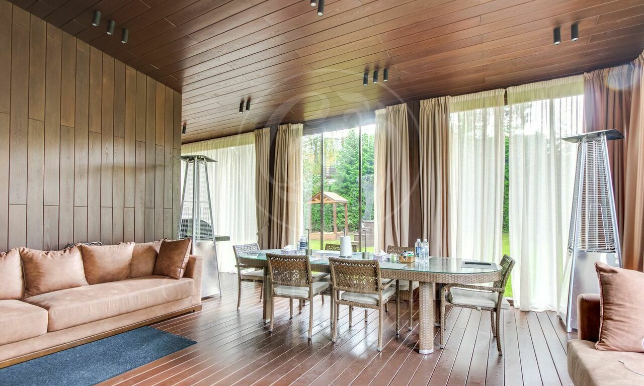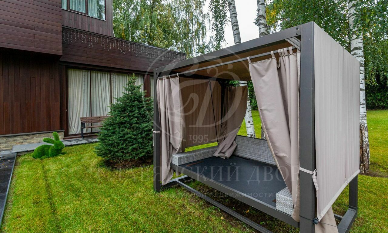 В доме есть уютная беседка с выходом на красивый ландшафтный участок.