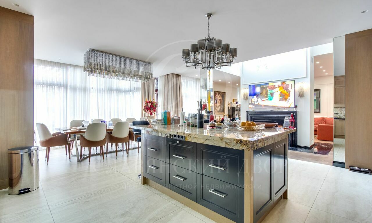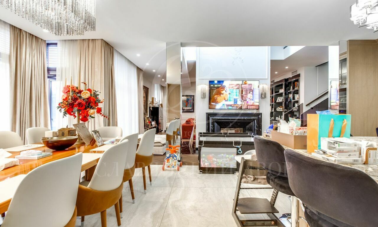 Просторная гостиная с панорамными окнами станет идеальным местом для отдыха и встреч с друзьями. Уникальная мебель и аксессуары от ведущих мировых дизайнеров подчеркивают изысканный вкус владельца.