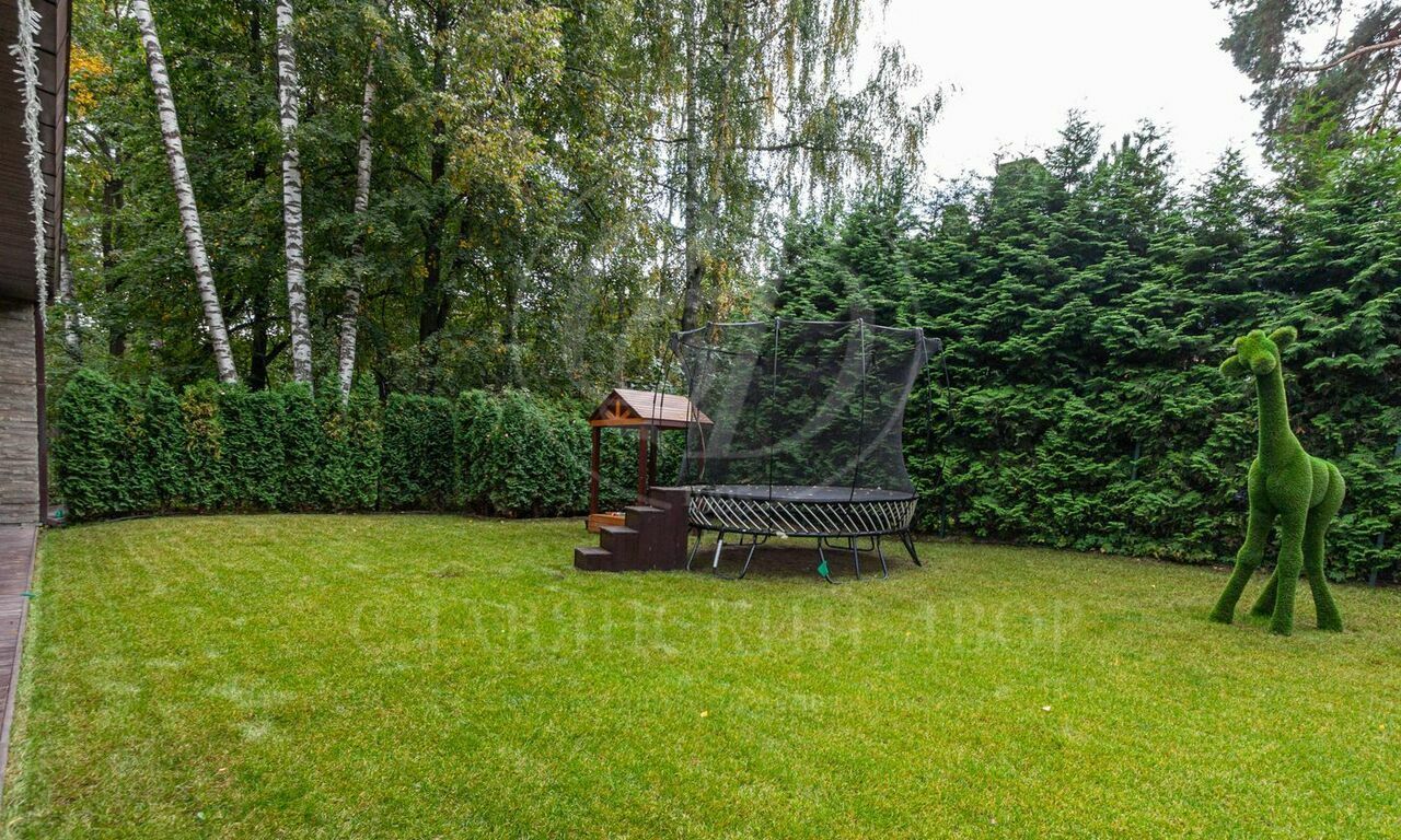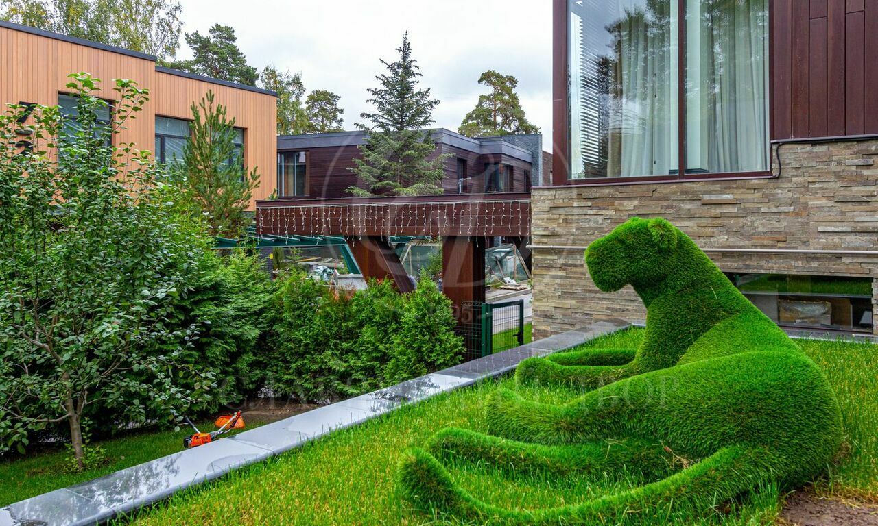 Участок окружен деревьями и забором, который обеспечивает приватность и защищает от посторонних глаз. Аккуратно постриженный газон, Величественная львица, игривый жираф и ушастый заяц выполнены из высококачественного газона, эти элементы создают волшебную атмосферу и уют.