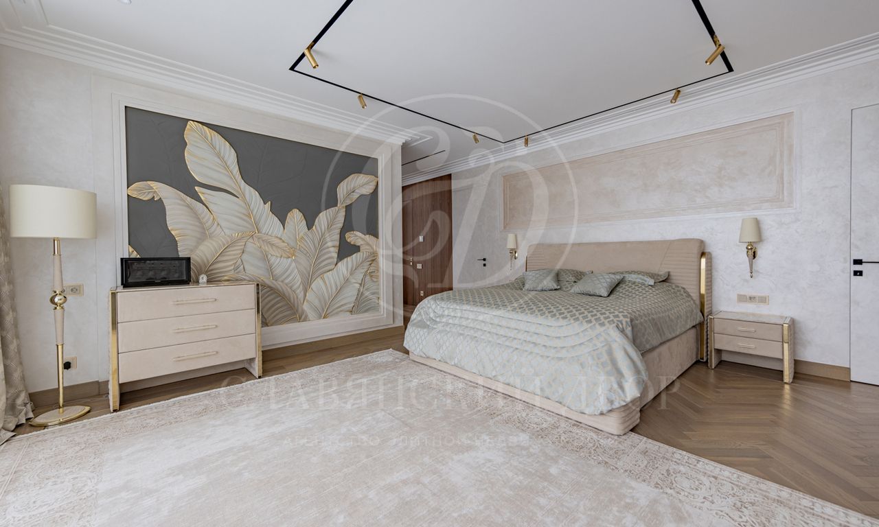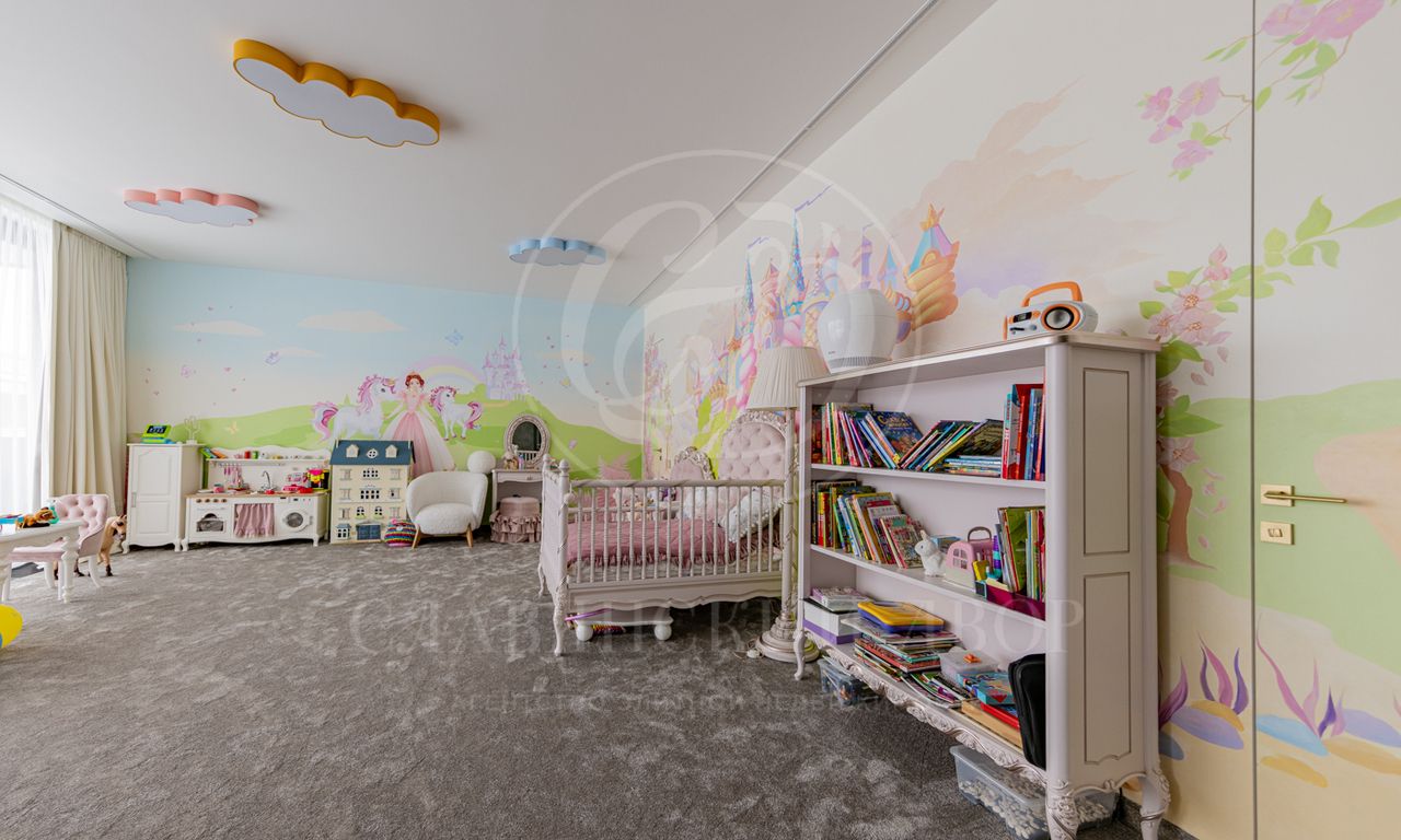 2 этаж: 2 спальни с с/у и гардеробными, комната свободного назначения с с/у и гардеробной, основная спальня с с/у, двумя гардеробными и выходом на террасу, блок для персонала (кухня, 2 спальни, с/у, постирочная).
