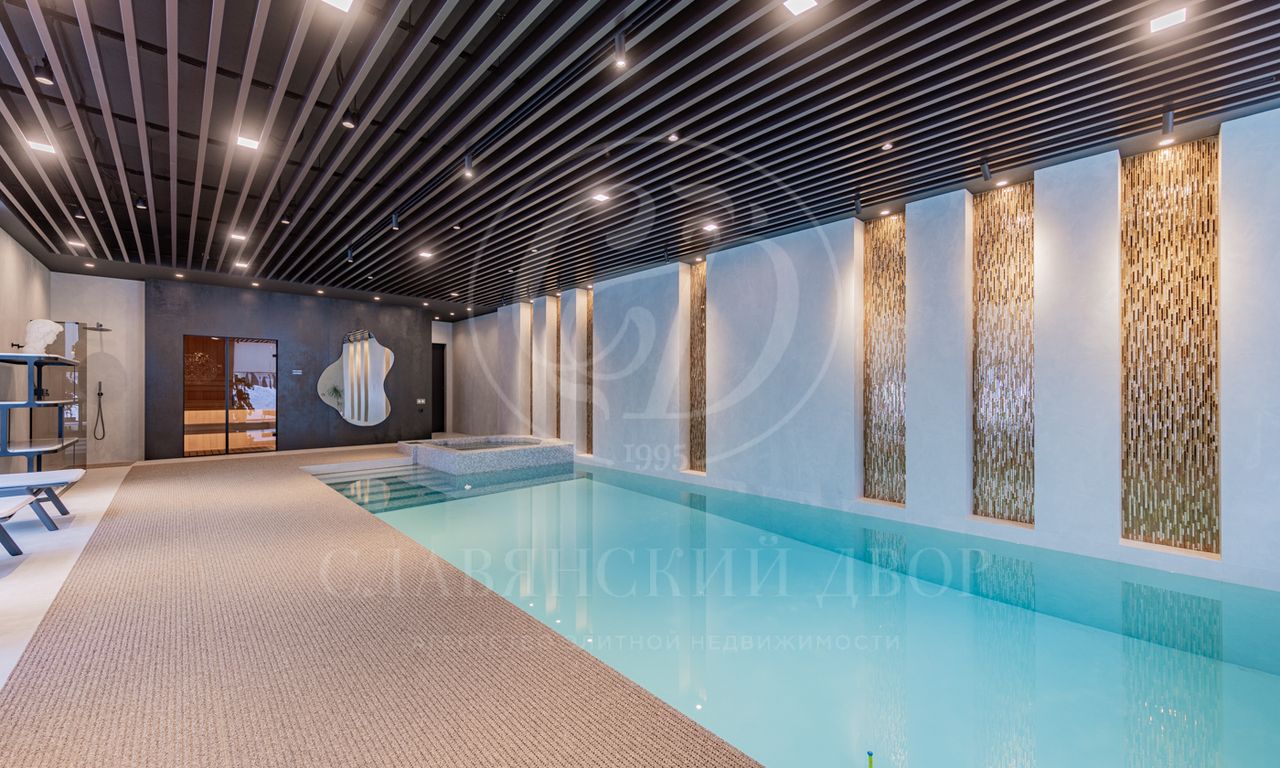 1 этаж: прихожая, гардеробная, с/у, гостиная, кухня-столовая, спальня с с/у, бассейн, сауна, душевая, раздевалка, гараж на 2 м/м.