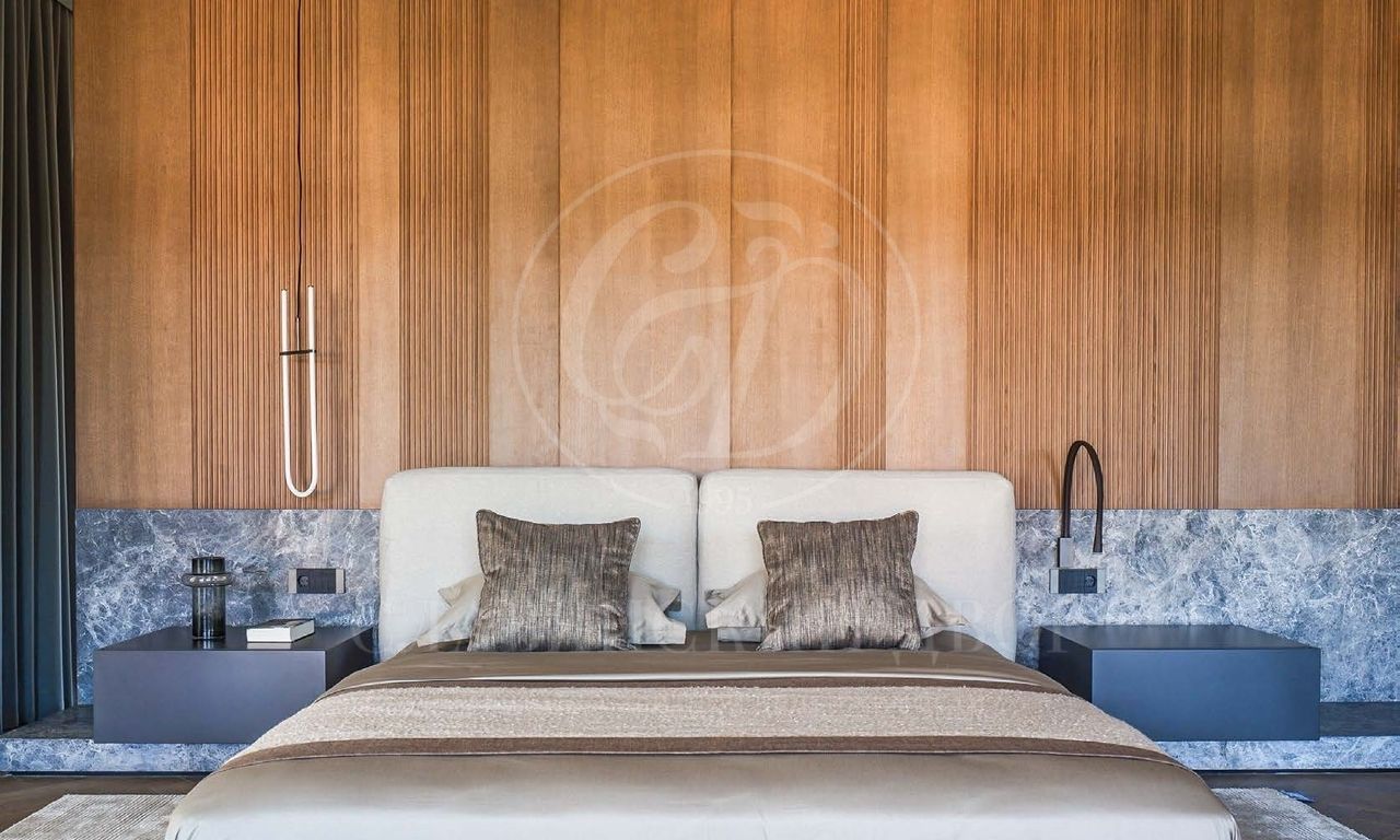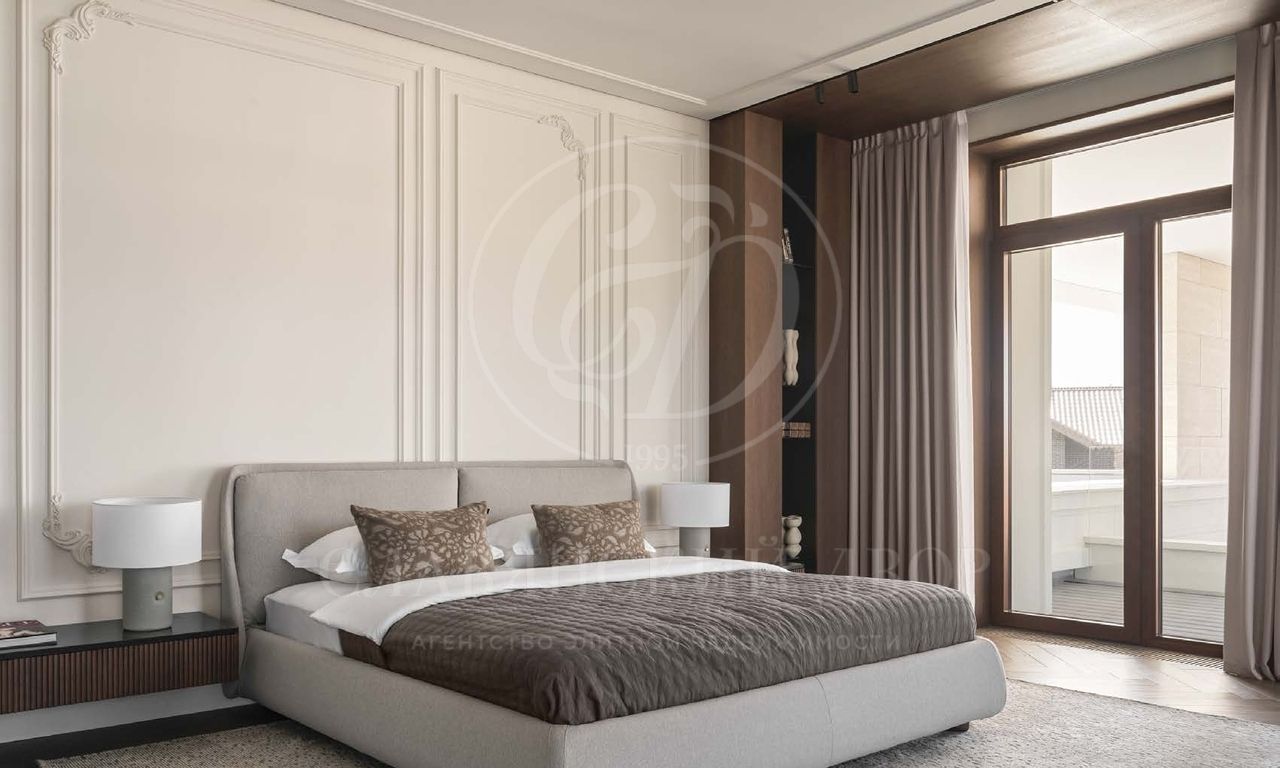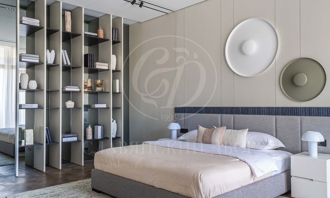 Мастер-блок общей площадью 109 кв.м состоит из спальни, двух гардеробных и двух ванных комнат.
