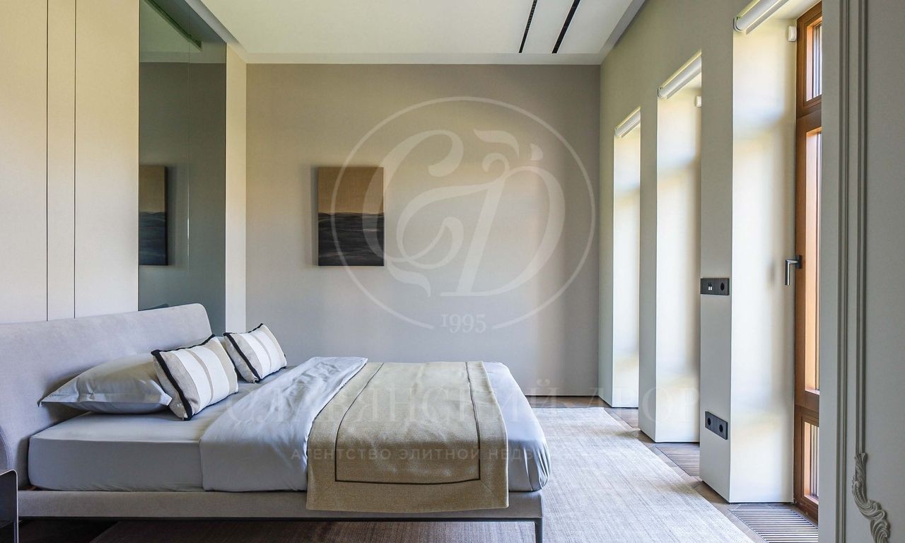 Элегантный особняк в современном стиле общей площадью 1457 кв.м расположен в коттеджном поселке Никольская слобода, самом близком из всех элитных поселков Новорижского шоссе.