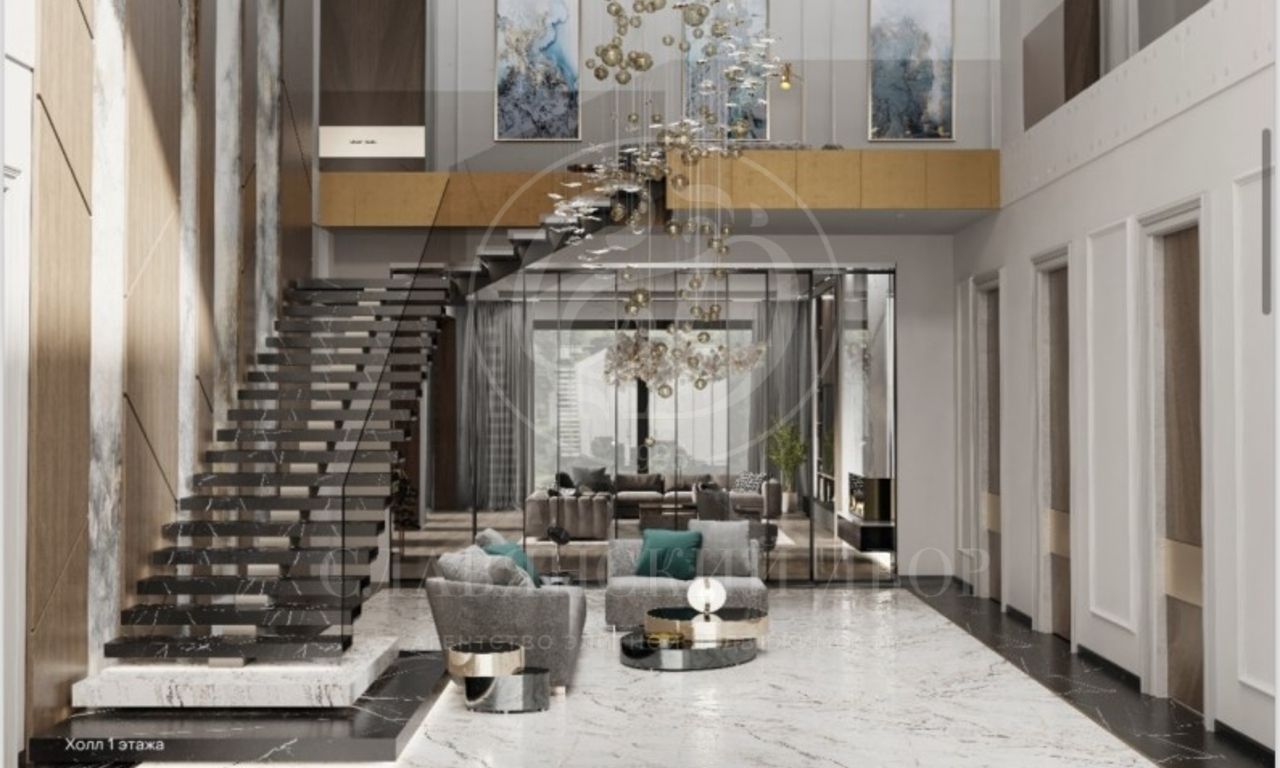 1 этаж: холл, гостиная, кухня, столовая, с\у, спа с бассейном, спальня, гараж на 4 мм, отдельный вход в квартиру для персонала