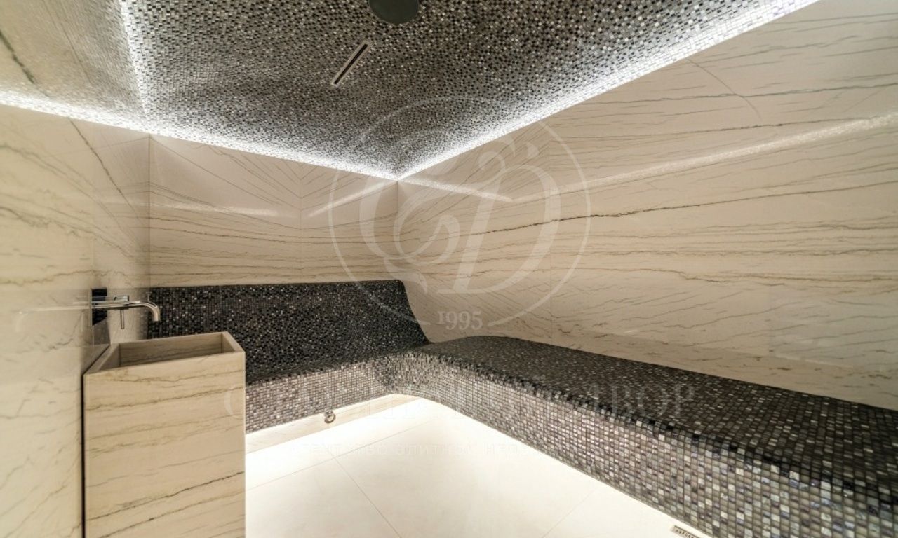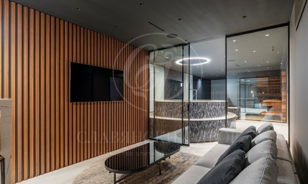 В интерьере использованы натуральные материалы: мрамор Fior Di Bosco, белый кварцит, орех, дуб, термоясень и фиброцементные панели, гармоничное сочетание которых, обеспечивает высокое качество, стиль и надежность. Престижные бренды Minotti, Flexform, Cassina, Dovlet House, Acerbis, Henge, Mebel-V, Poltrona Frau отличаются лаконичным дизайном, современностью и функциональностью.