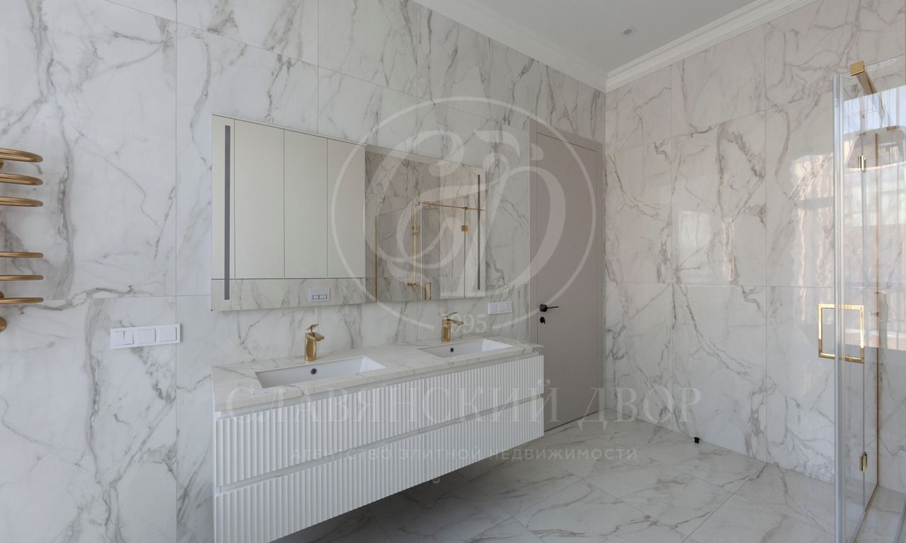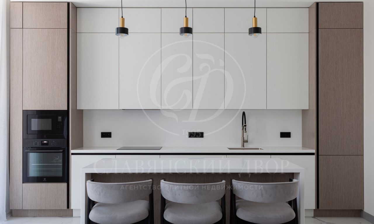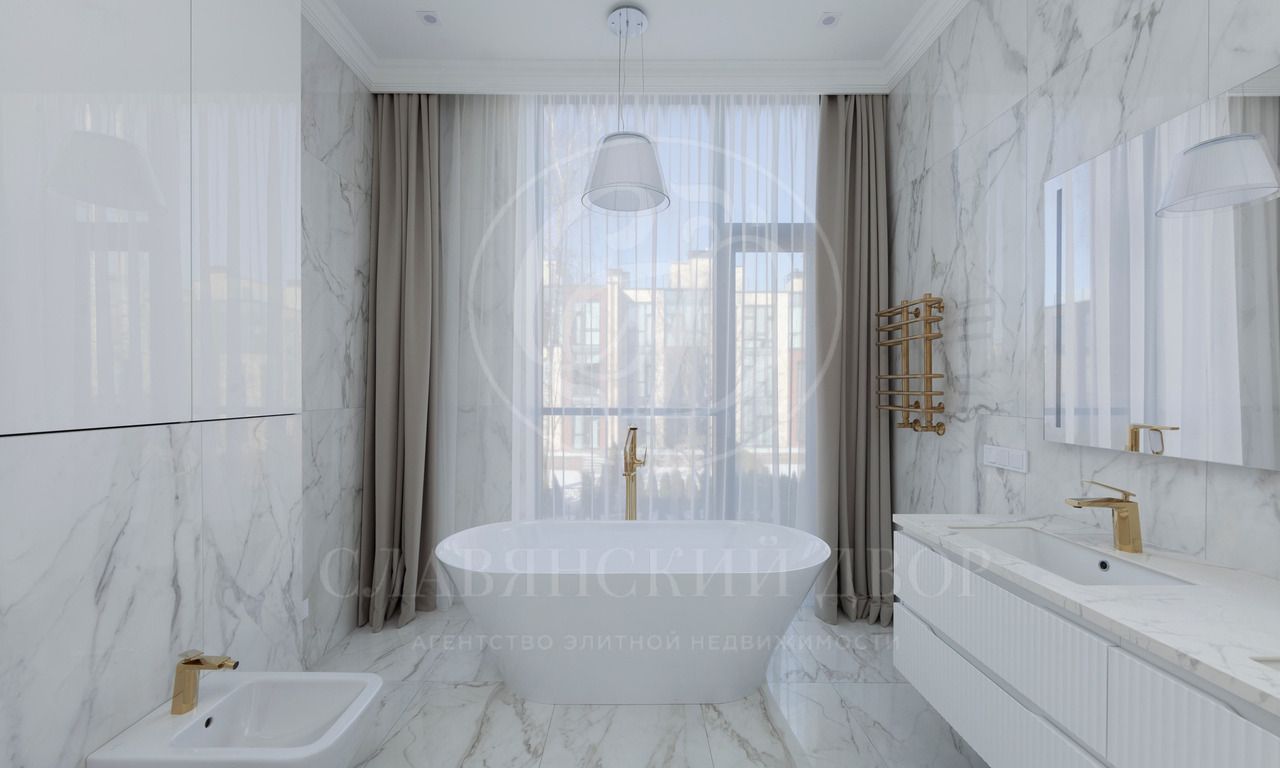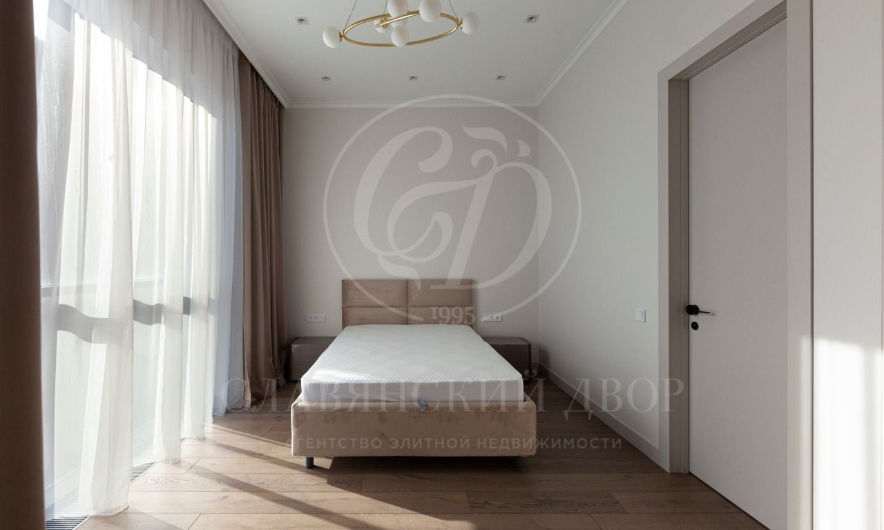 Кухня-столовая, гостиная с камином и большая терраса станут отличными местами для времяпровождения с близкими и друзьями. 4 спальни, размещенные на 2-м и 3-м этажах, открывают красивый вид на поселок.