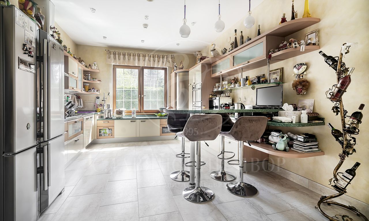 Цокольный этаж: бильярд, кинотеатр, бар, винная комната, жилая комната с с/у, технические помещения.
