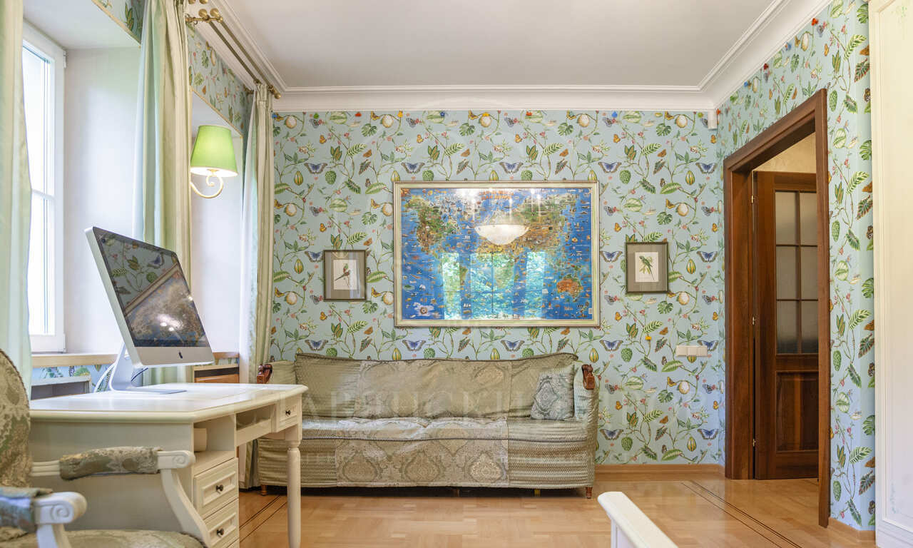 Мансардный этаж: гостиная-библиотека с барной стойкой и камином (есть возможность переоборудовать под несколько дополнительных спален), с/у с душевой, системы хранения;