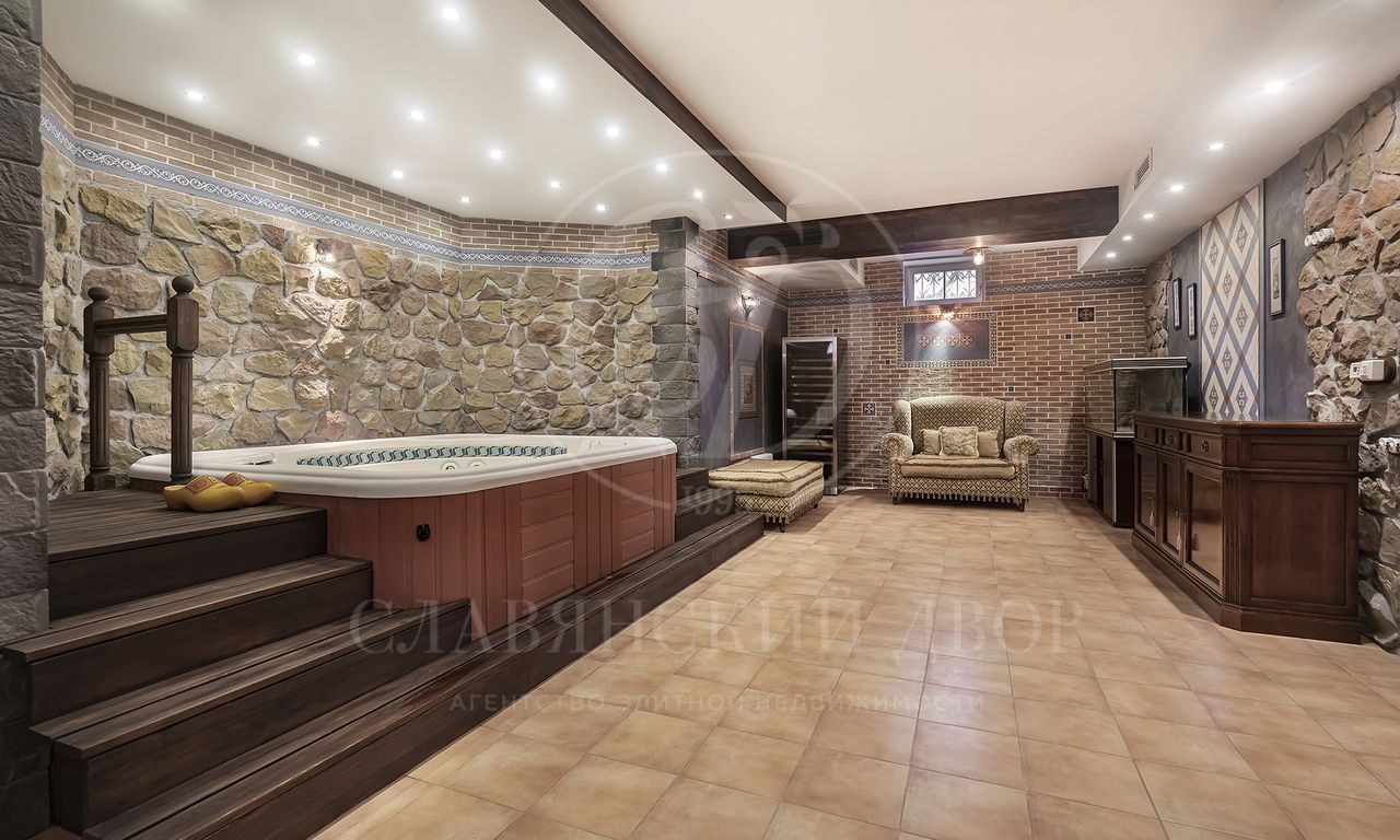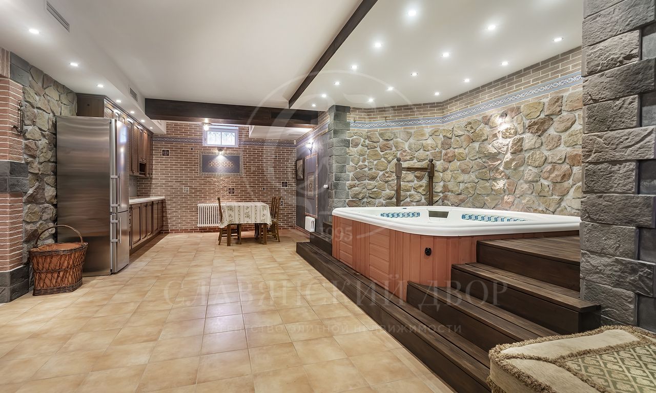 Цокольный этаж: SPA-зона с джакузи и мини-кухней, сауна с душевыми и с/у, сезонная гардеробная;