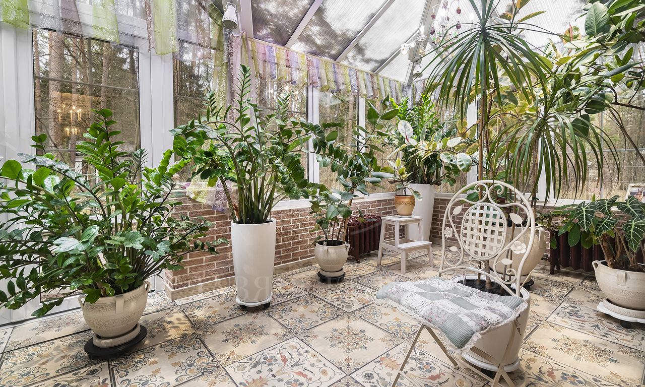 Первый этаж: холл, гостиная с камином, зимний сад, кухня-столовая, чайная комната, гардеробная, гостевой с/у;