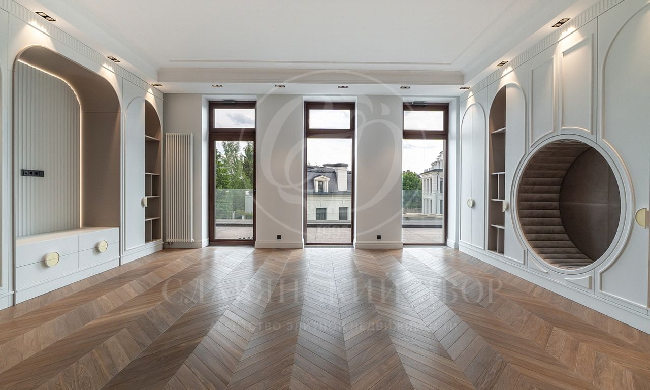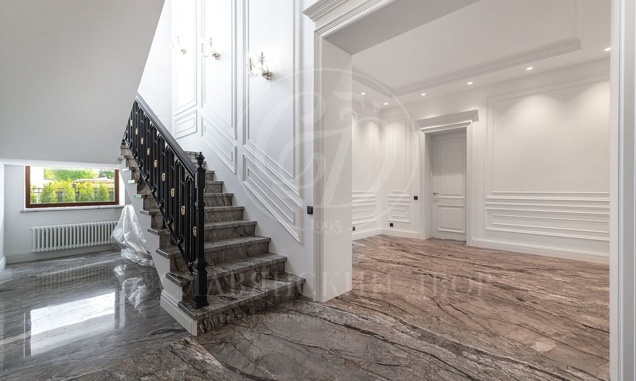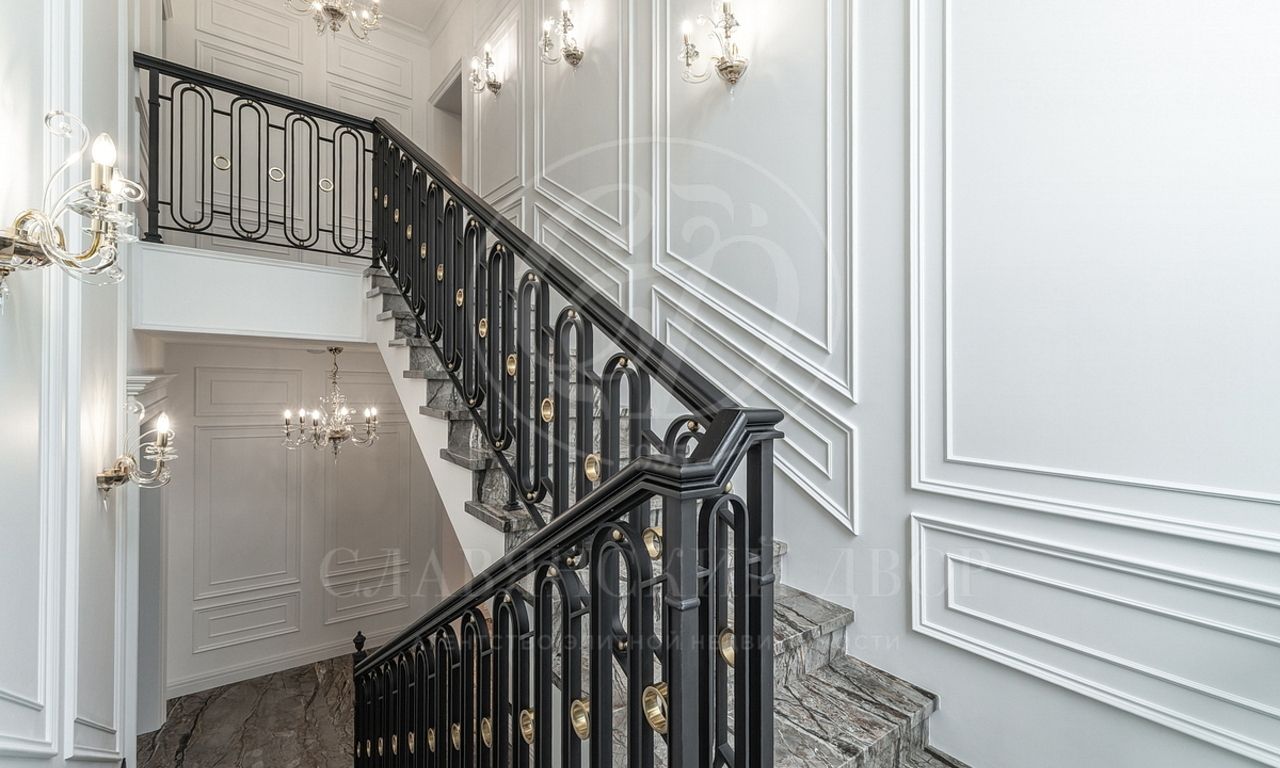 Лестничный холл второго этажа — лёгкий, светлый, с выходом к семейным пространствам и приватным зонам.