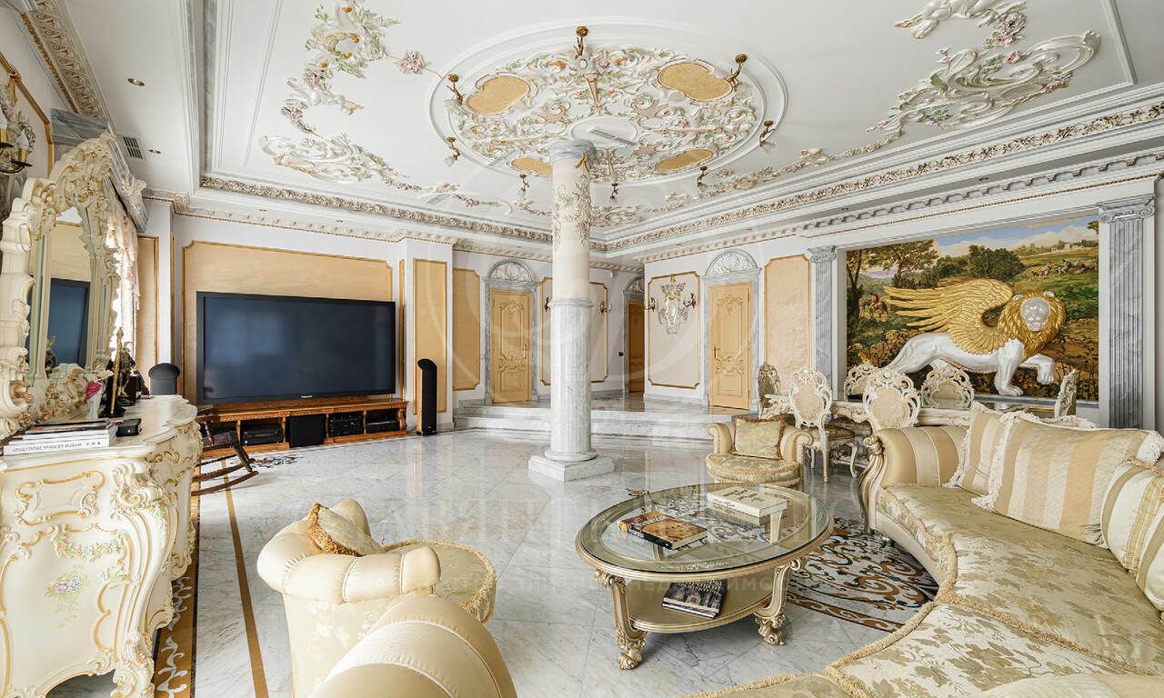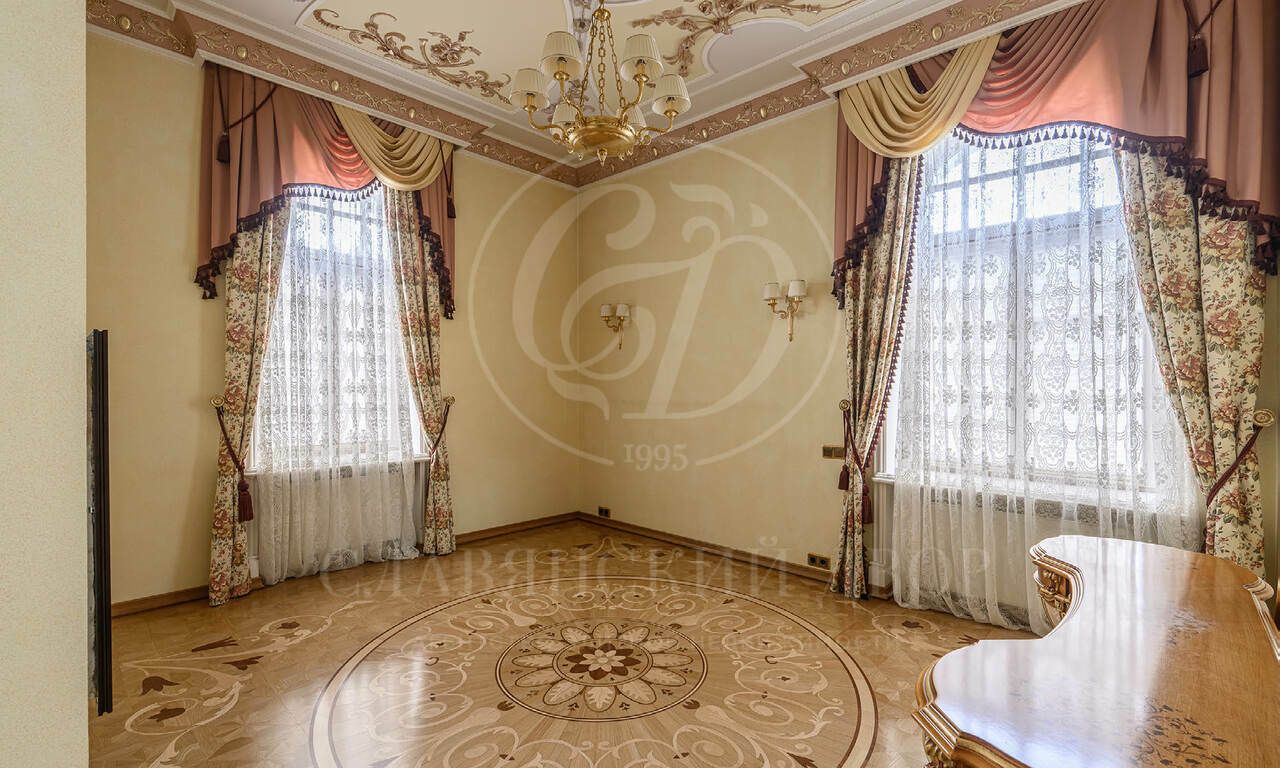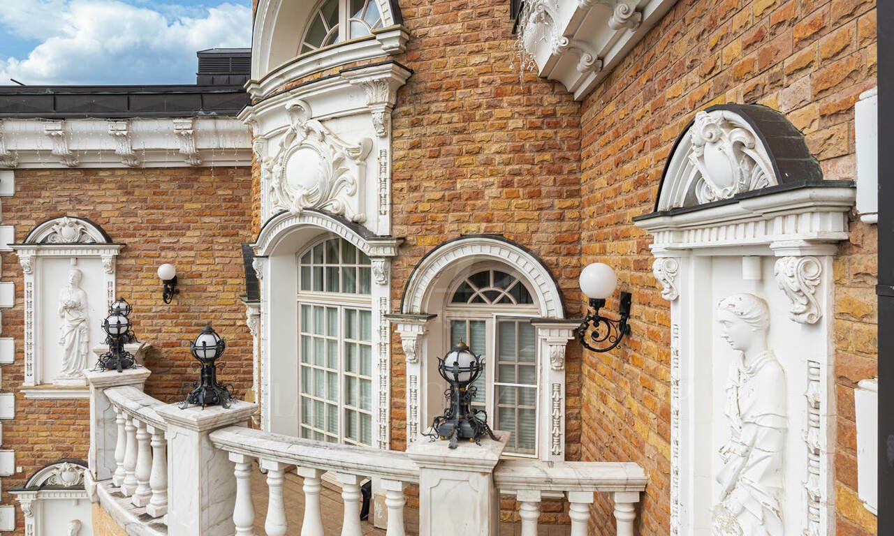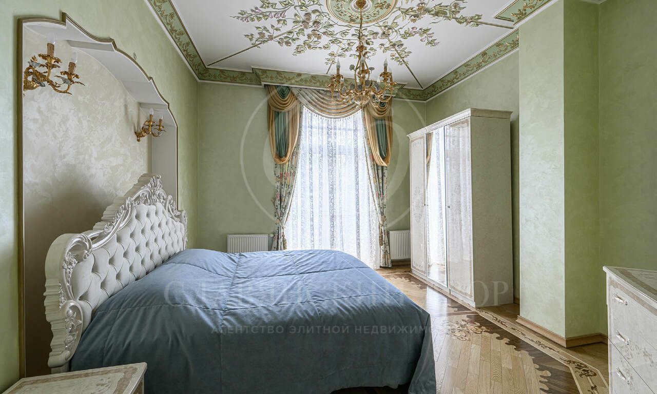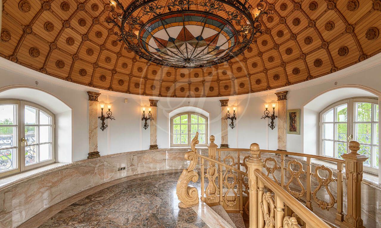 На продажу предлагается элегантная резиденция , созданная по индивидуальному проекту в классическом стиле. В отделке использованы материалы премиум класса, Стены в доме — декоративная штукатурка, роспись, натуральное дерево и мрамор. Пол — художественный паркет и мрамор. Потолки — ручная роспись. Двери и подоконники — массив дерева и мрамор.