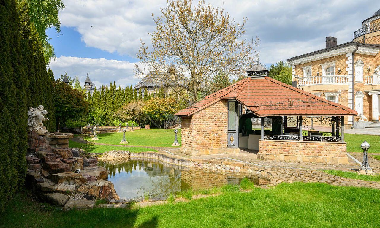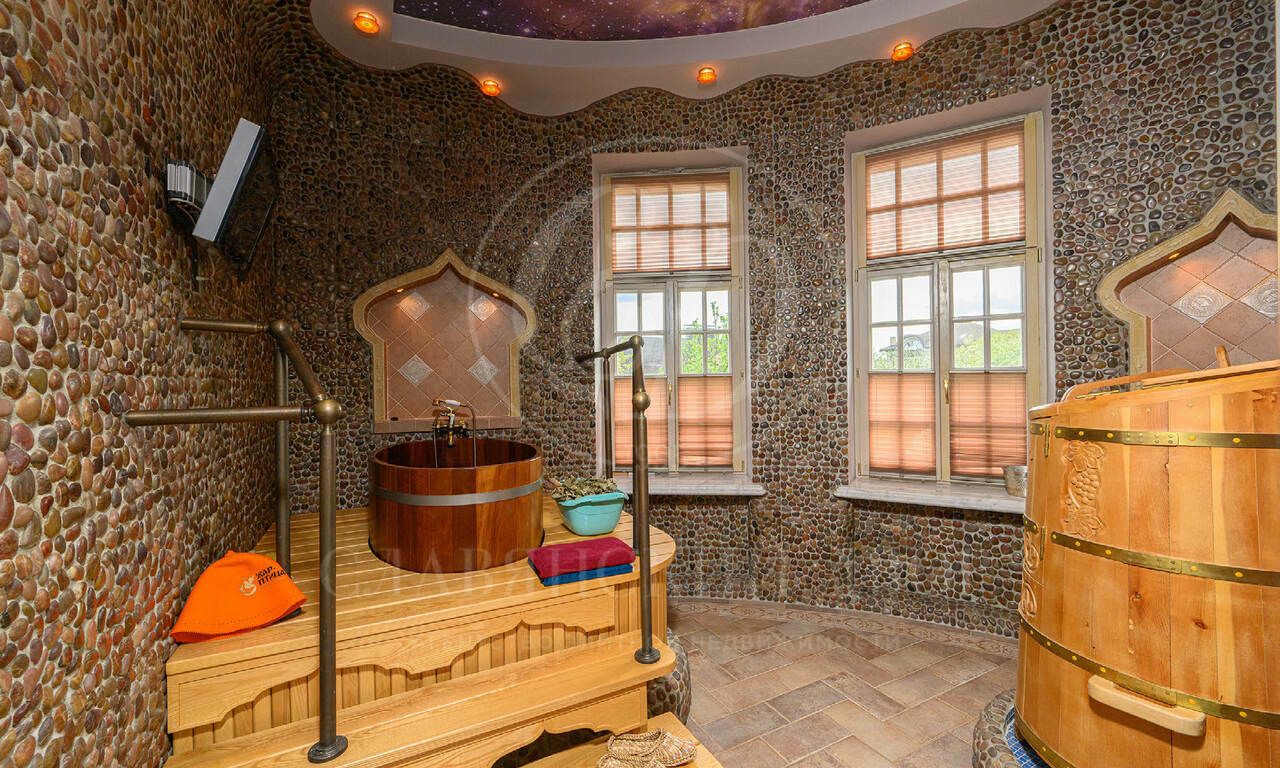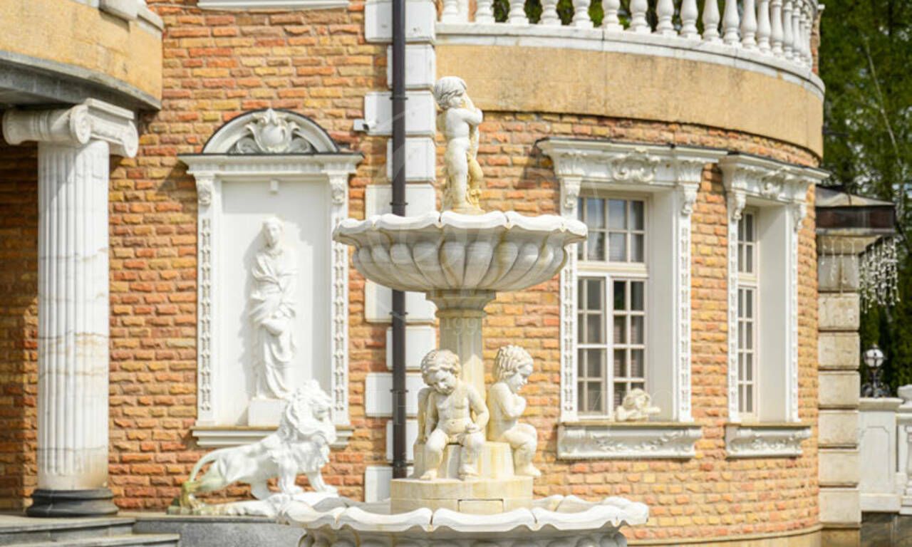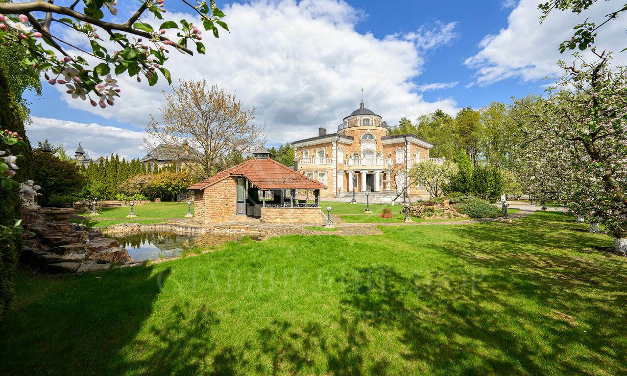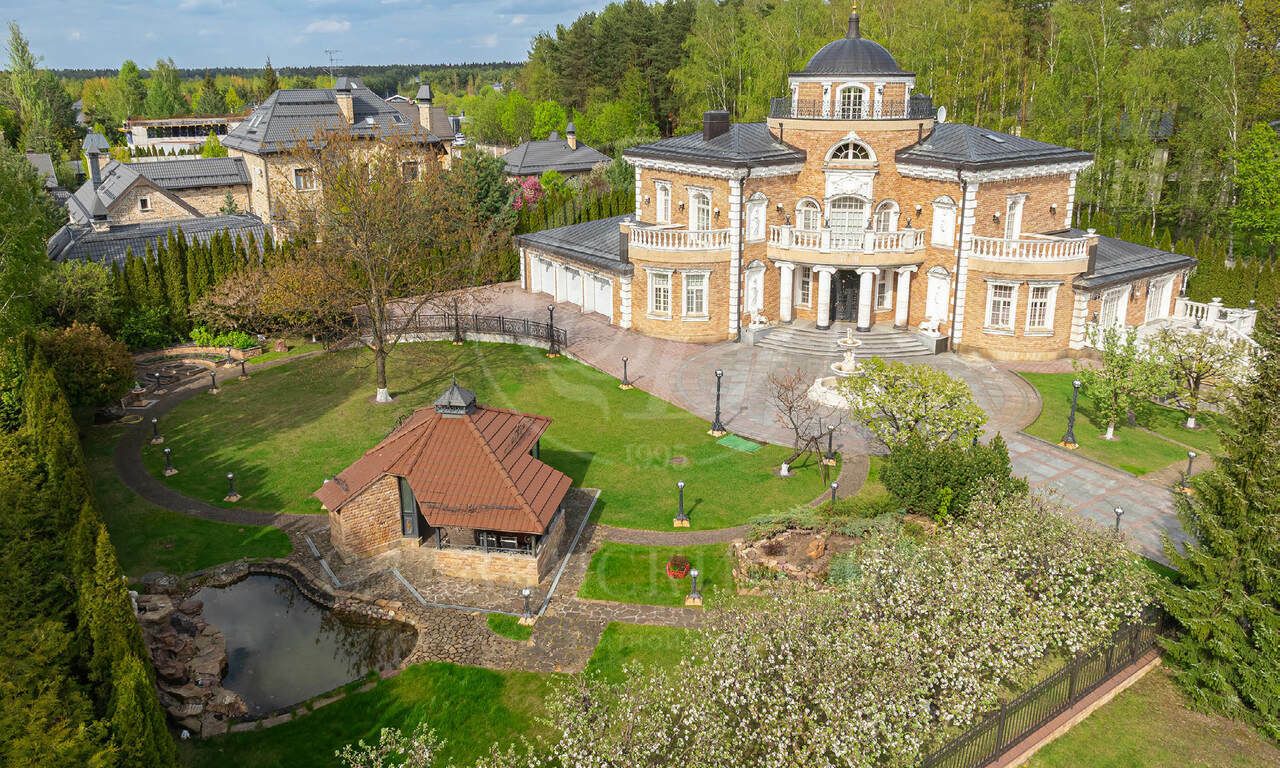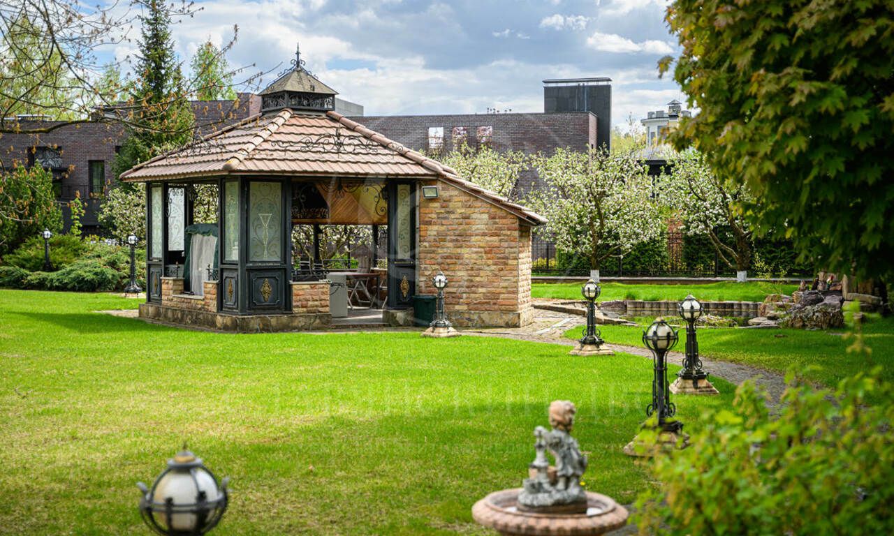 Живописный зеленый участок с ландшафтным дизайном, парадный въезд с круговой площадкой и фонтаном в центре, отделка дорогими материалами по эксклюзивным эскизам, в доме много элементов ручной работы, интерьеры в стиле венецианской классики.