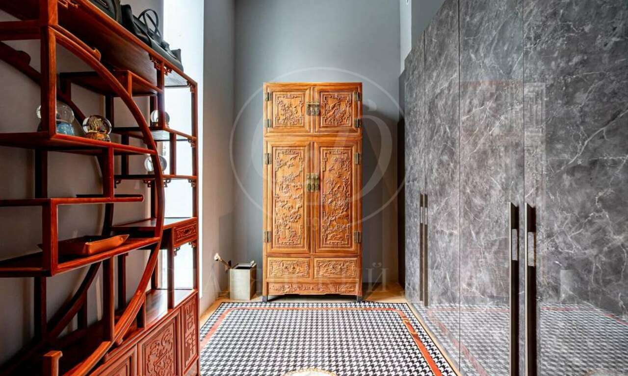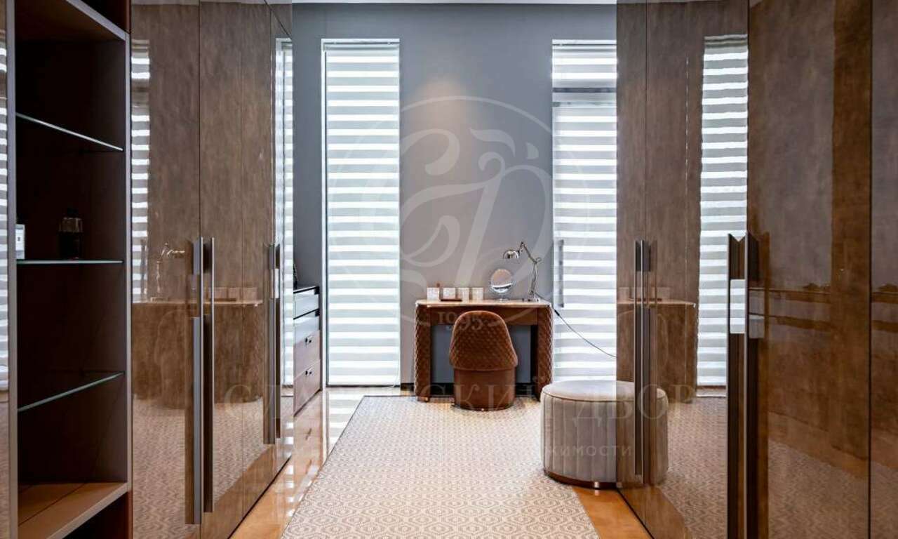 3 спальни , 1 кабинет, 3 сан узла, просторная постирочная и гардеробная при входе.