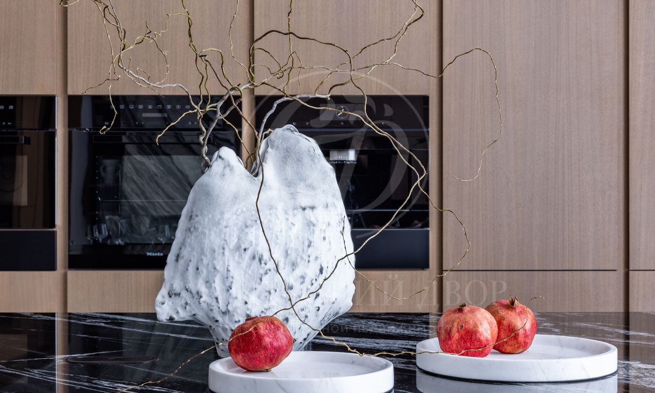 Фасад выполнен с использованием натурального камня, термоясеня, композита и гранита, с декоративными вставками из крупноформатного керамогранита Laminam. Реализована скрытая водосточная система с подогревом и профессиональная молниезащита — эстетика и надежность в каждой детали.