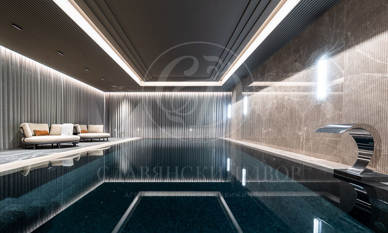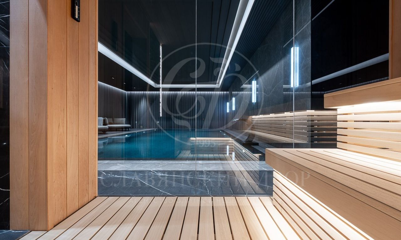 1 Этаж: прихожая, холл, санузел — 3 шт., гараж — 3 шт., спальня с гардеробной и санузлом, гостиная, столовая, кухня, рабочая кухня, терраса, бассейн, сауна, душевая, котельная.