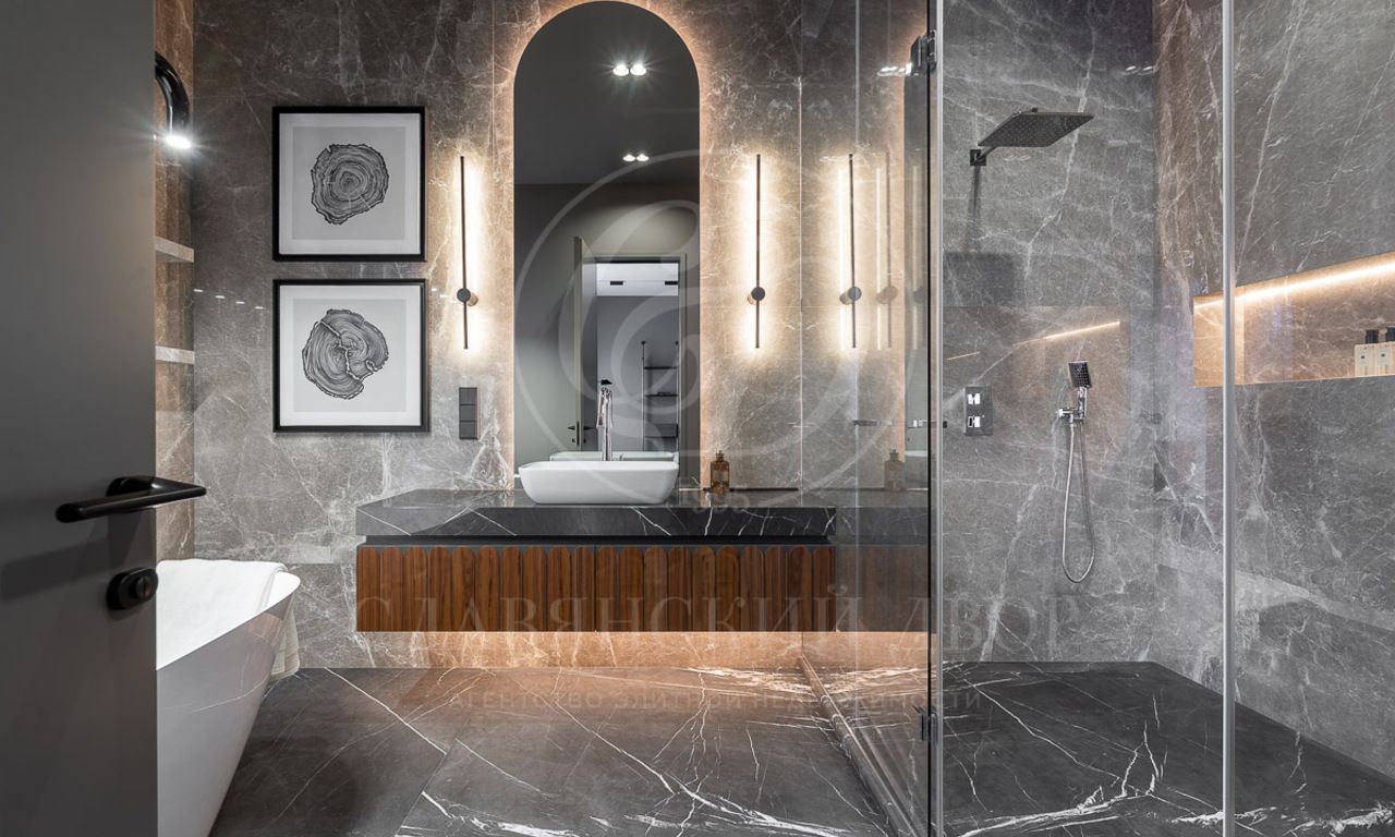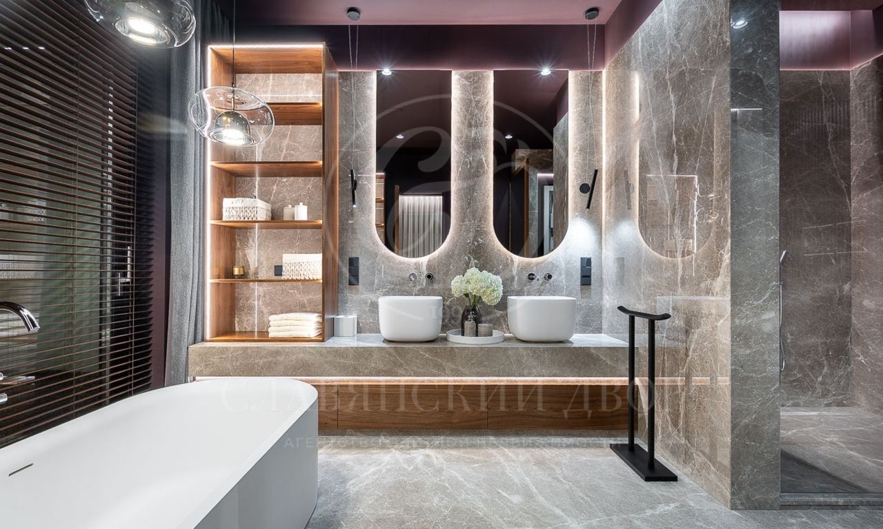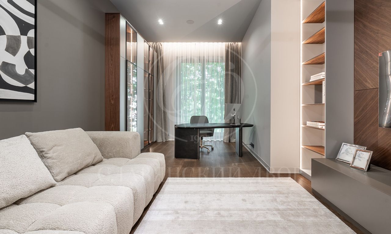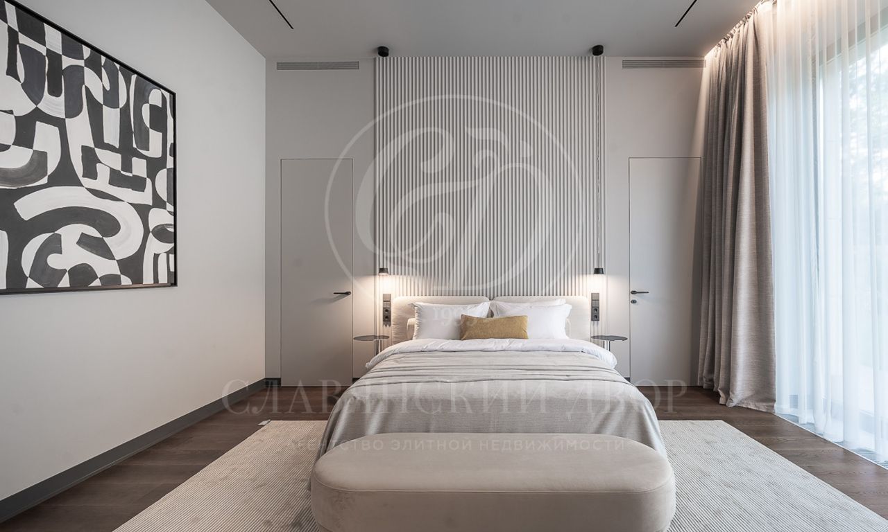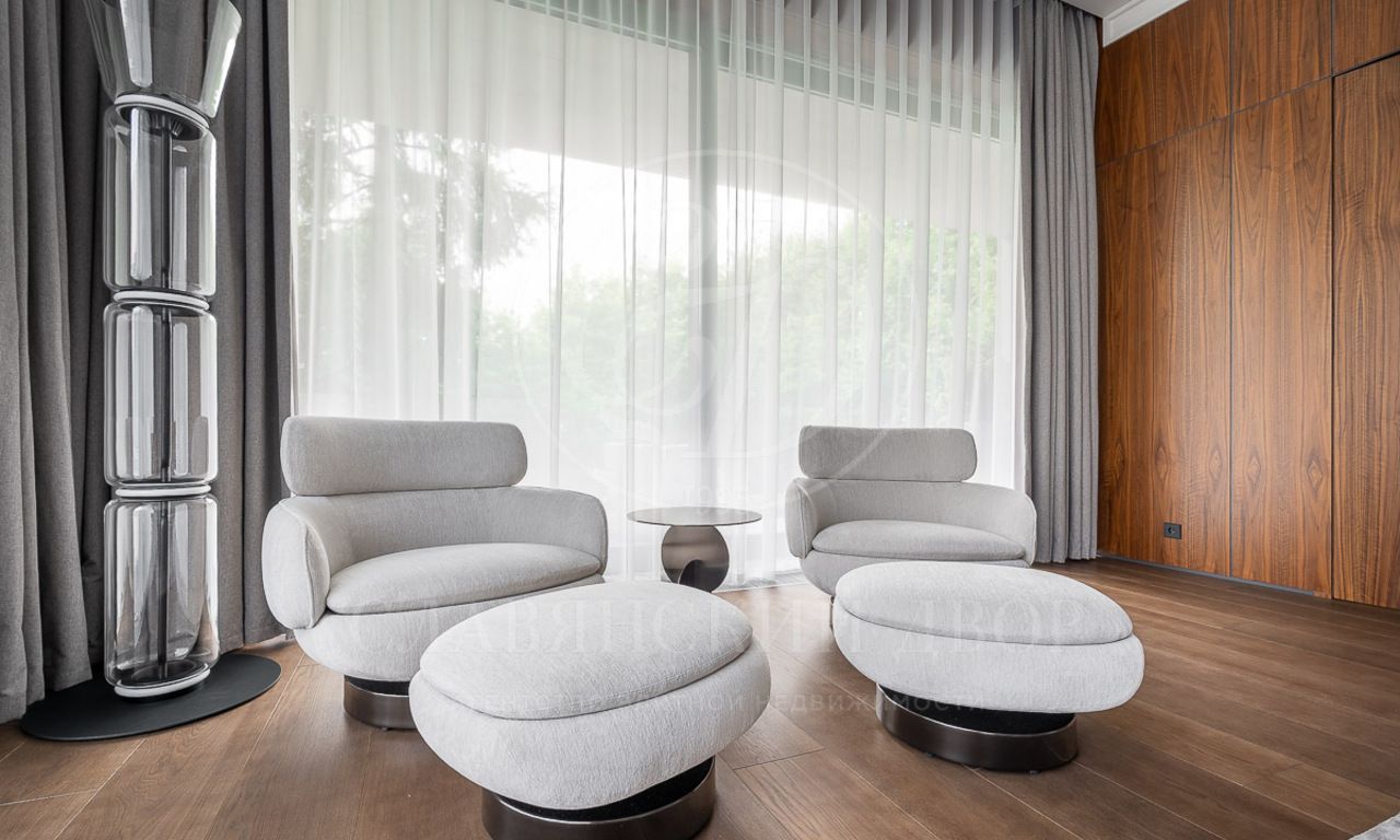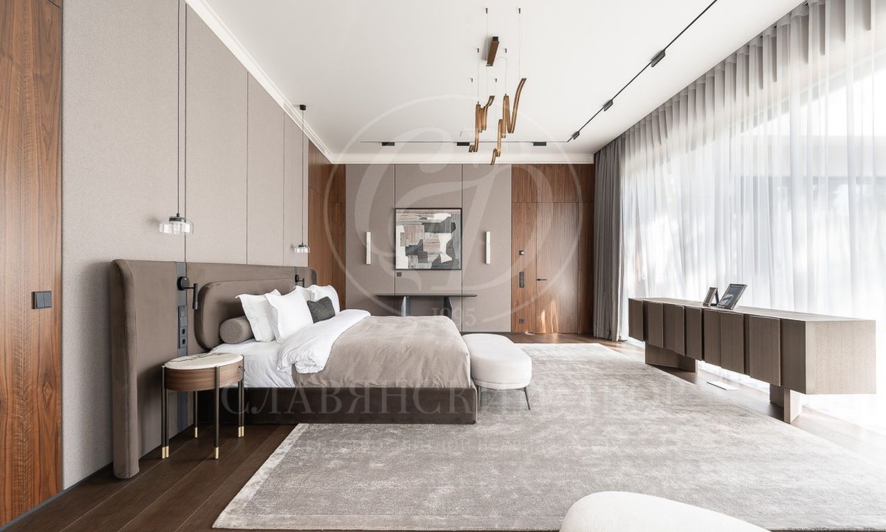 2 Этаж: холл, мастер — спальня с санузлом и гардеробной, кабинет — 2 шт., спальня с гардеробной и санузлом, терраса — 3 шт., блок для персонала — 2 шт.