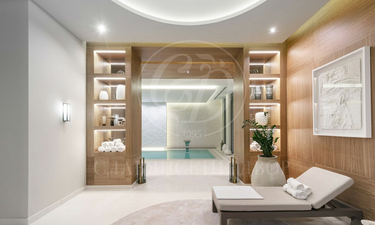 -SPA-зона: эксклюзивный бассейн длиной 12 м, где архитектура встречается с искусством. Настенный барельеф, выполненный по индивидуальному эскизу, задает тон пространству. Мощный противоток дает возможность полноценных тренировок без границ бассейна, для тех, кто ценит форму и силу. Рядом находятся сауна, хаммам, купель, зона отдыха.