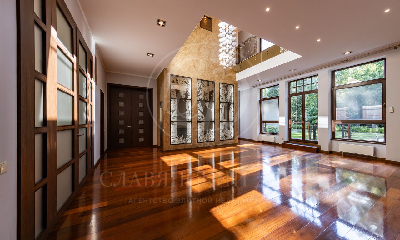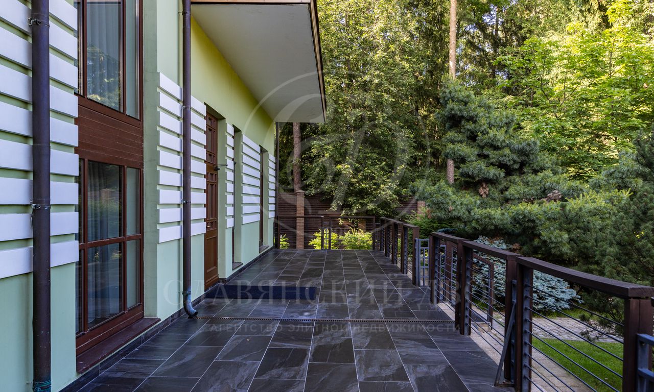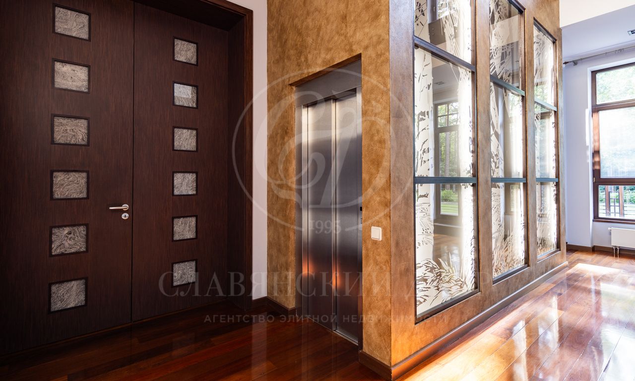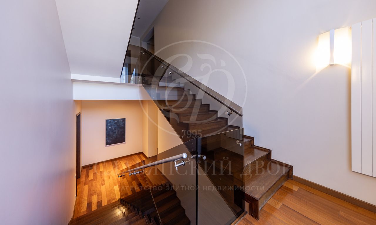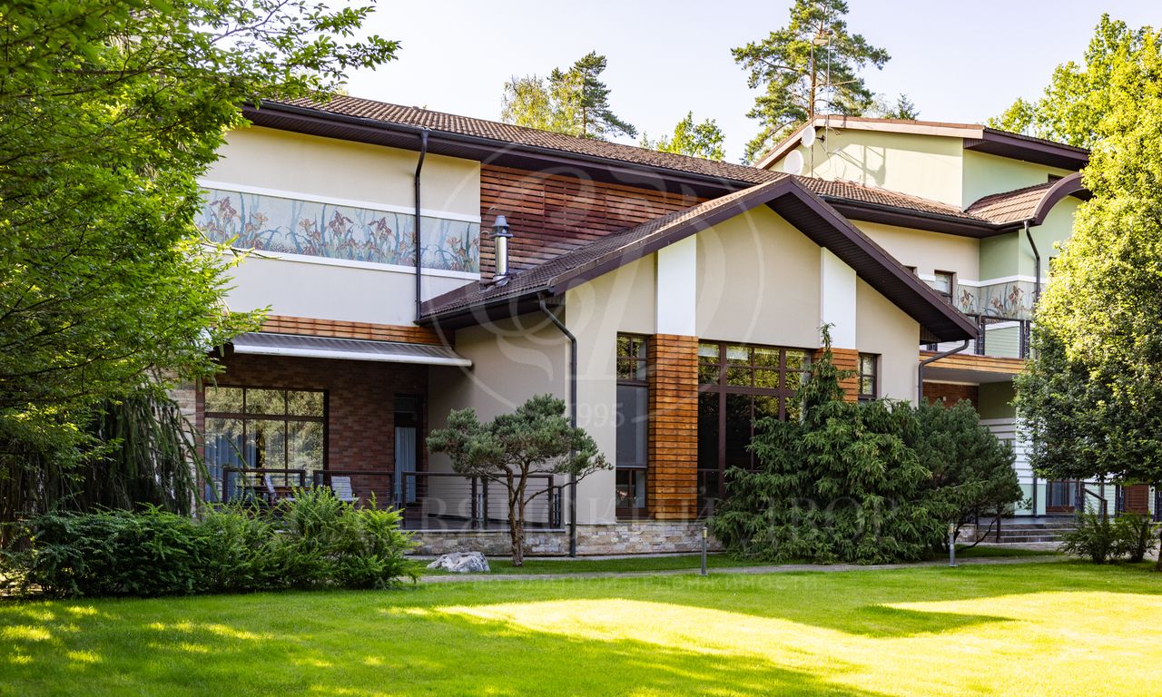 Дом расположен на живописном лесном участке площадью 60 соток с аллеей у парадного входа. Благодаря продуманному ландшафтному дизайну и хвойному массиву по периметру участка здесь царит редкое ощущение покоя. Фасад выполнен в выразительном сочетании фактур и материалов. Архитектура привлекает внимание сложной геометрией и нестандартными объемами.
