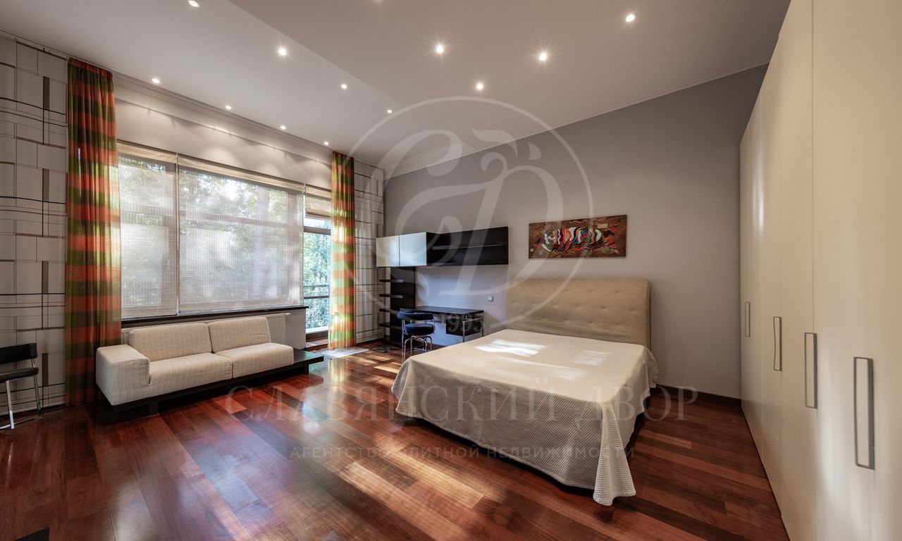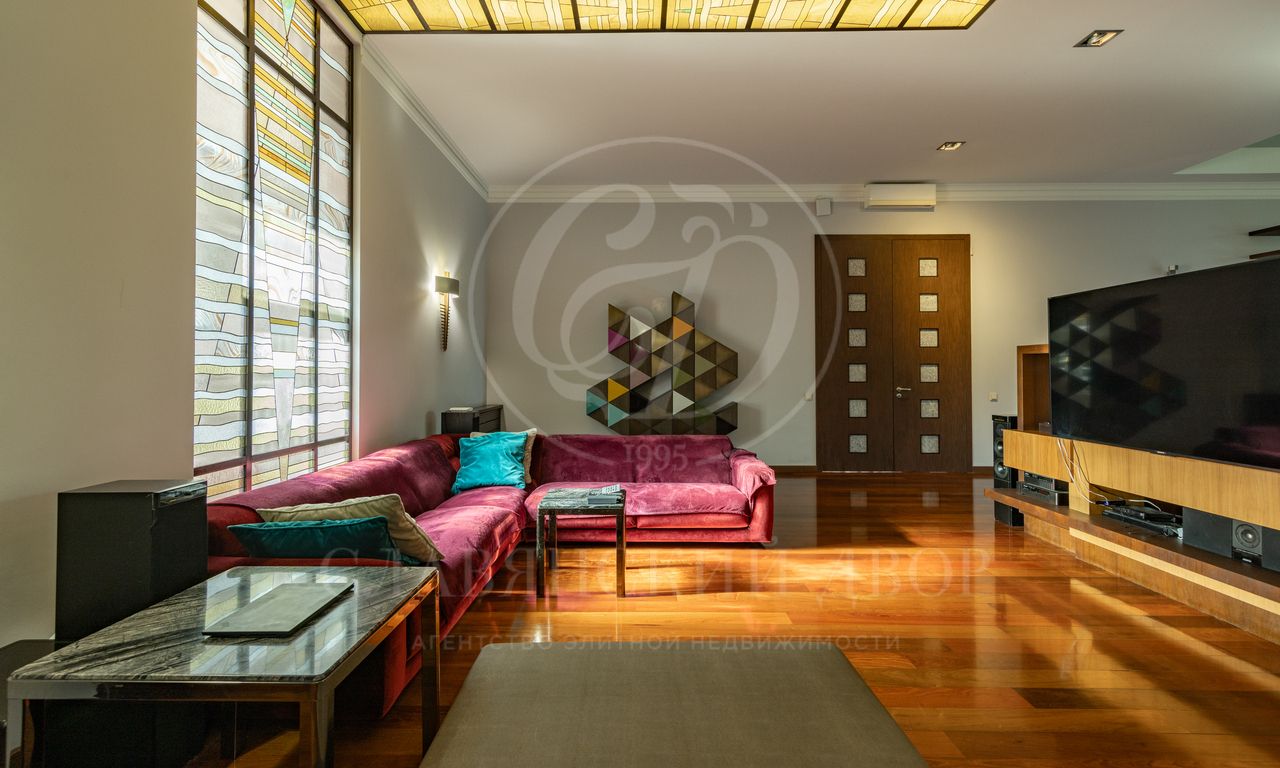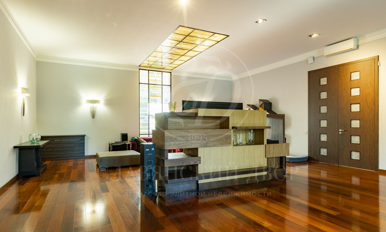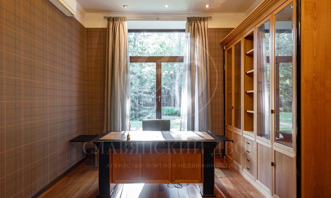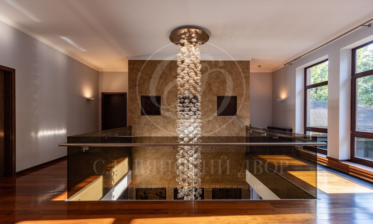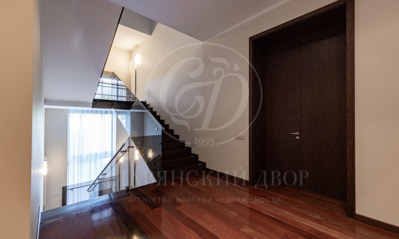Дом расположен на живописном лесном участке площадью 60 соток с аллеей у парадного входа. Благодаря продуманному ландшафтному дизайну и хвойному массиву по периметру участка здесь царит редкое ощущение покоя. Фасад выполнен в выразительном сочетании фактур и материалов. Архитектура привлекает внимание сложной геометрией и нестандартными объемами.