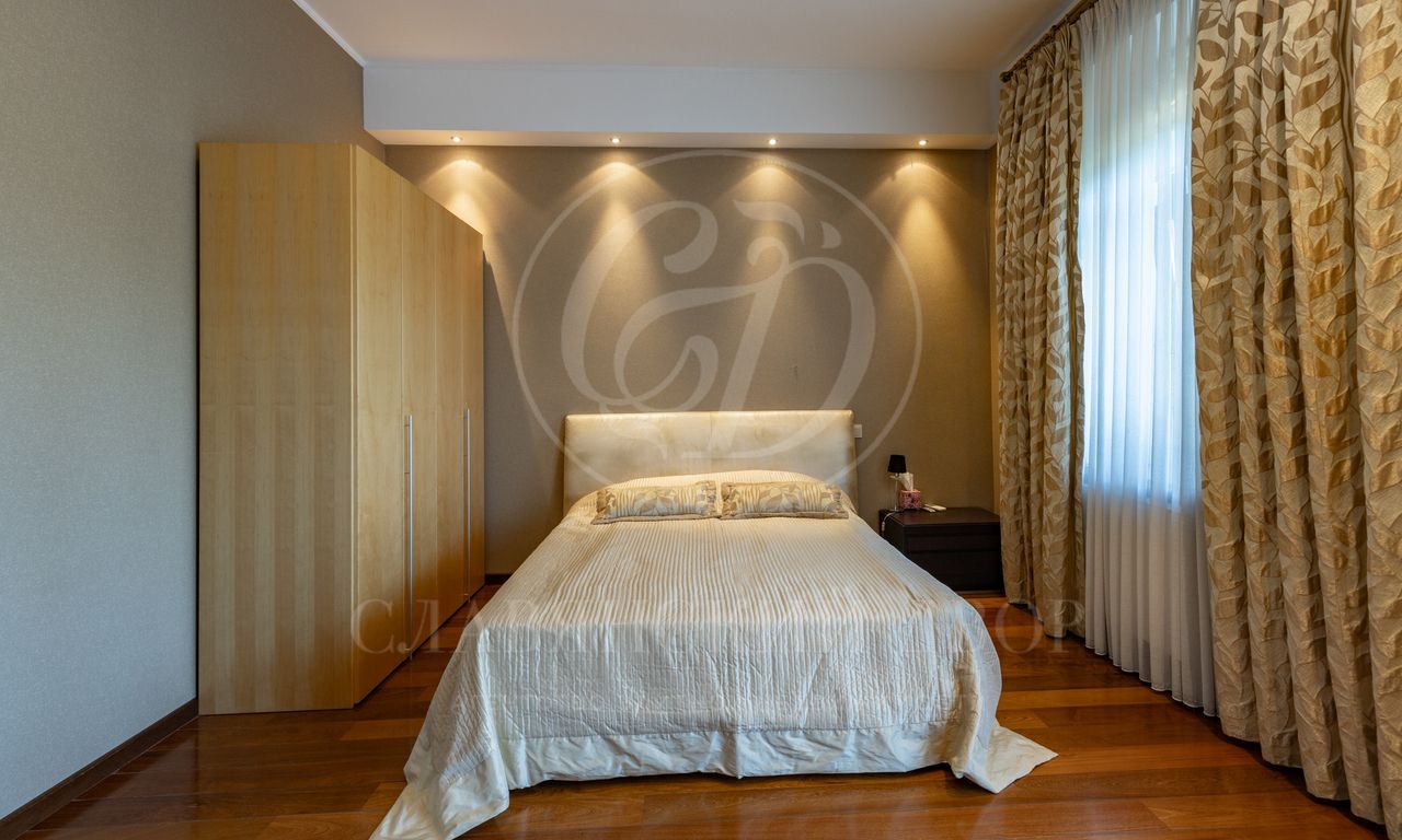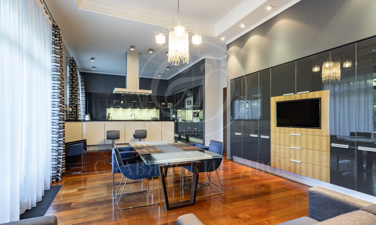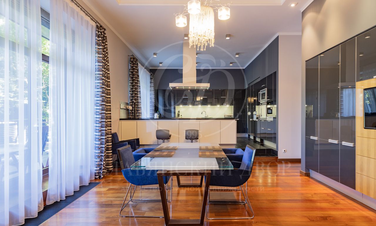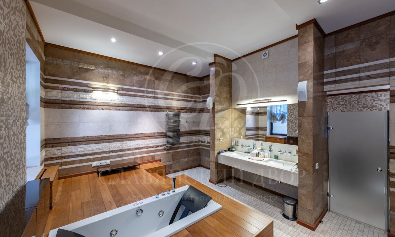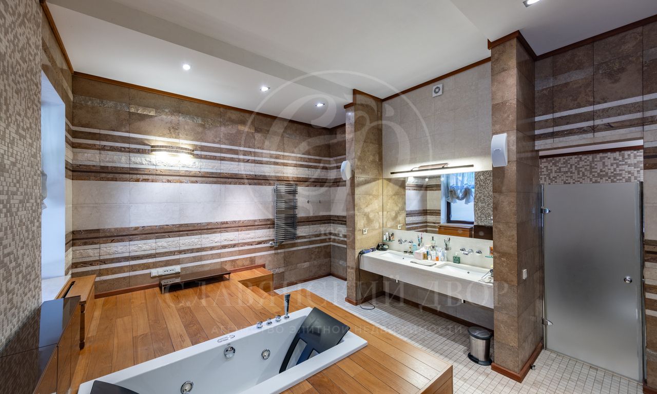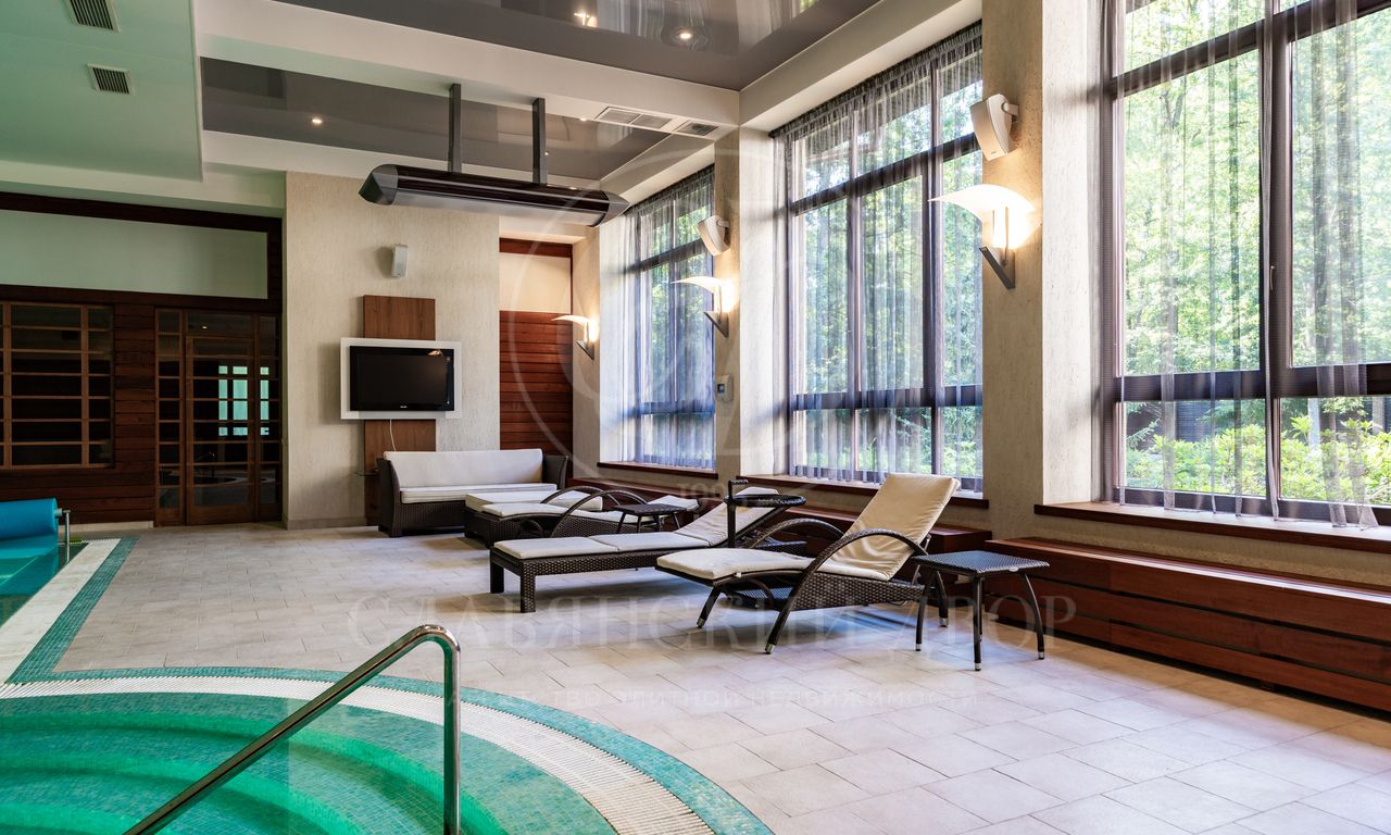 1 этаж: прихожая, гардеробная, с/у, лифт, большой парадный холл с выходом на террасу, гостиная, кабинет, кухня-столовая с большой летней террасой, с/у, кладовая, Spa-Зона (бассейн, сауна, купель, русская баня, с/у, дешевая, выход на террасу), гостевые спальни- 2шт с с/у, кухня, холл с гардеробной.