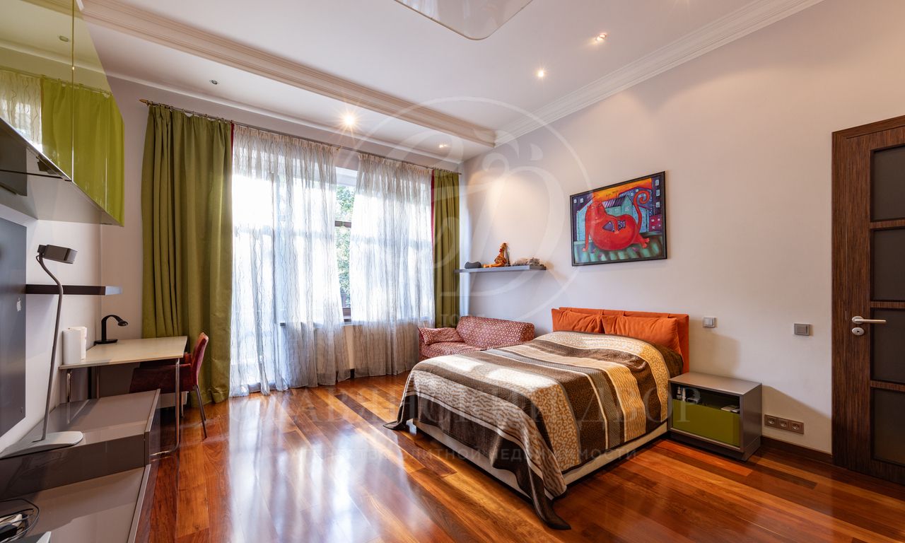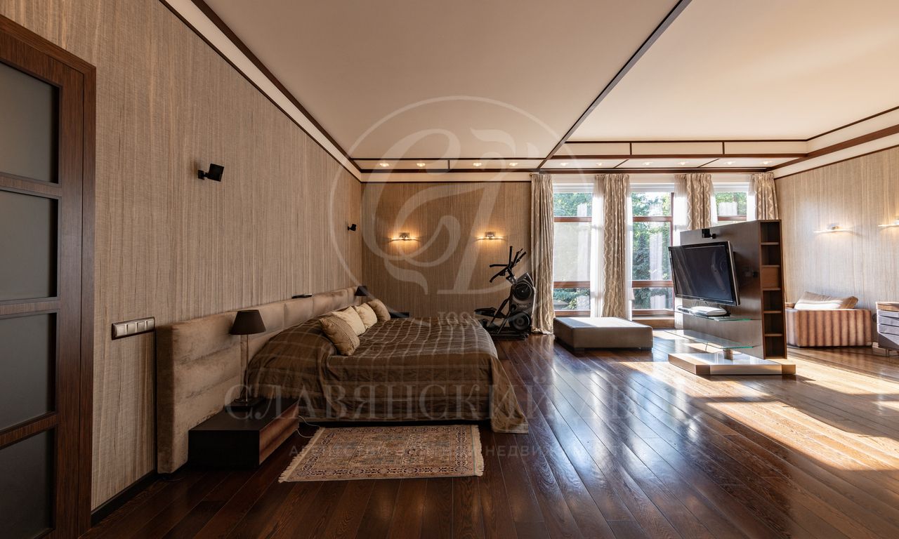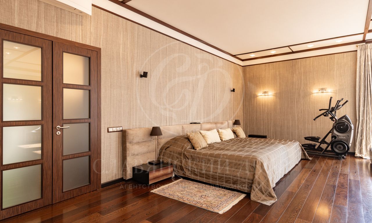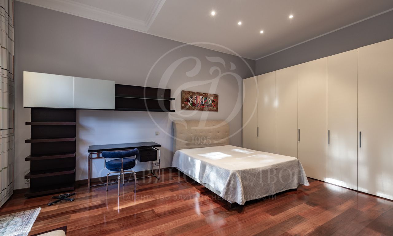 2 этаж: мастер спальня с собственной гардеробной и ванной комнатой, спальня №1 с с/у, детский блок (3 спальни с с/у и гардеробными), мансардный этаж над детским блоком (игровая и учебная зоны, комната для няни, с/у).