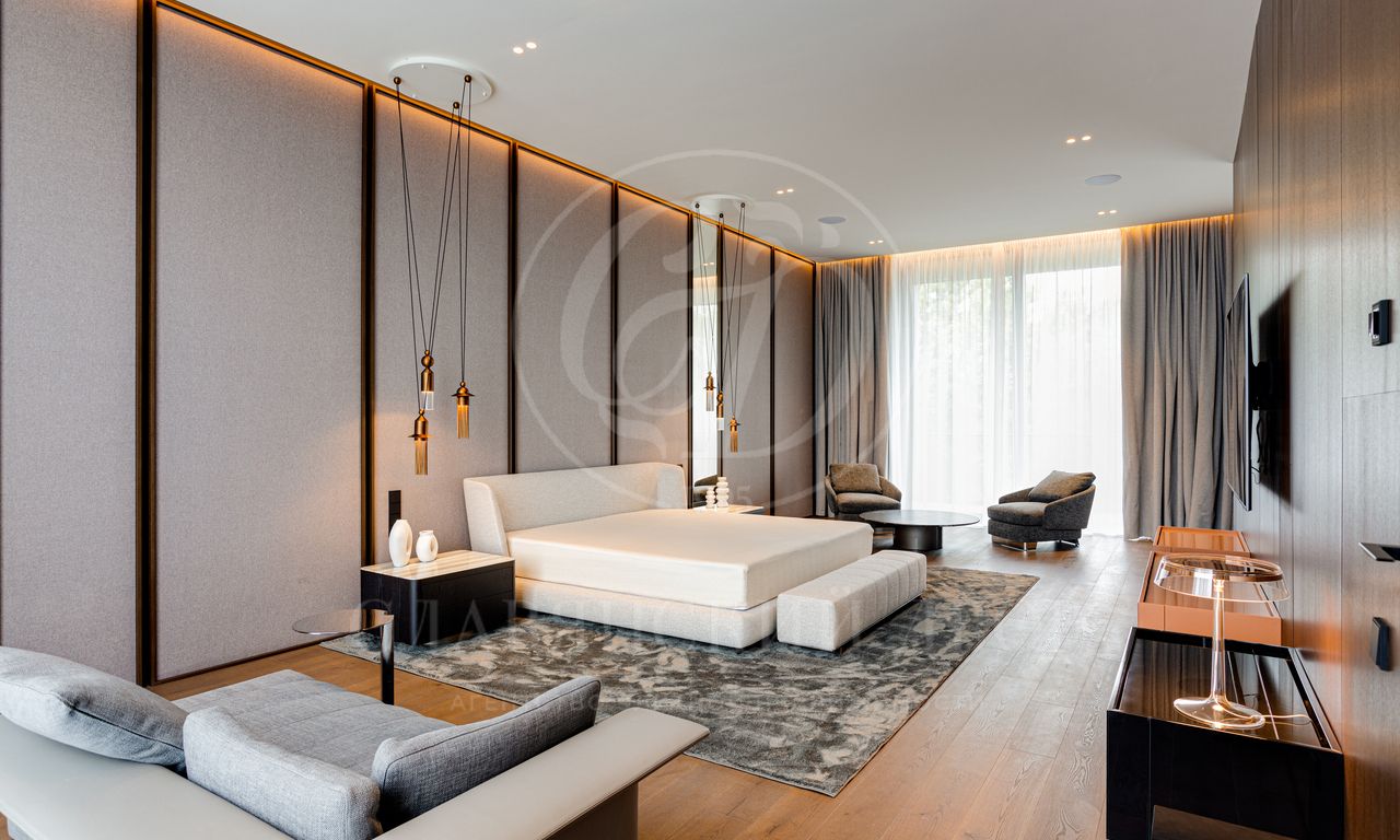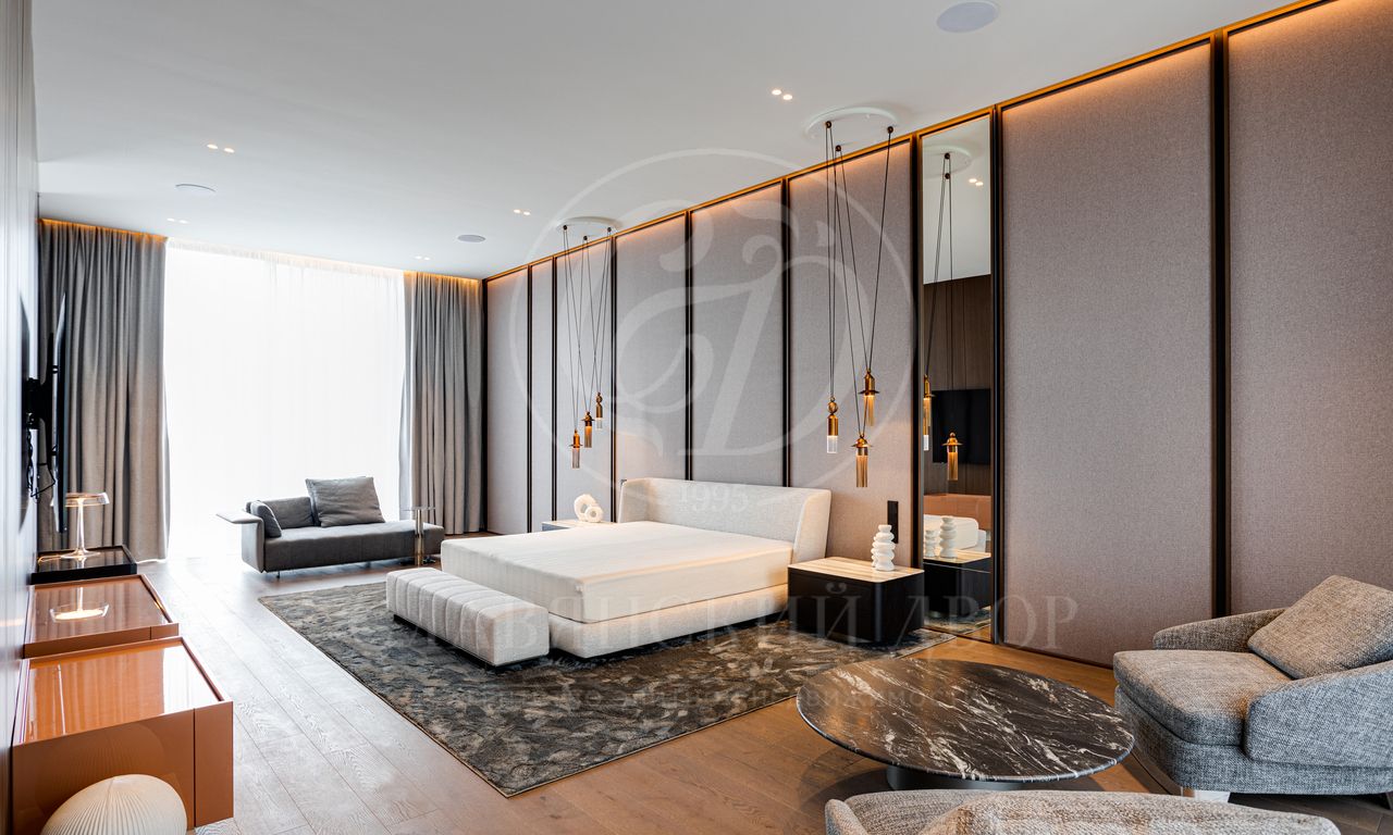 2- этаж: холл, мастер-спальня с просторными гардеробной, ванной комнатой и выходом на балкон, 3 спальни с гардеробными и с/у, спальня с гардеробной и ванной комнатой.