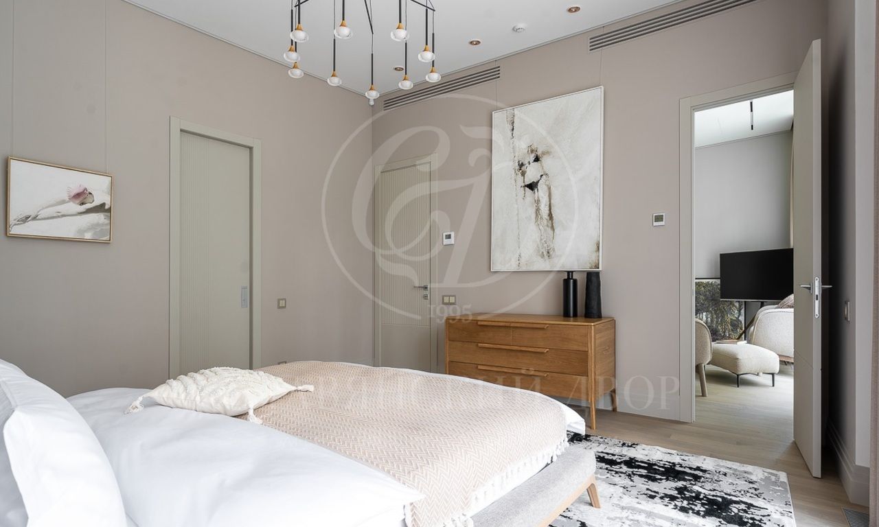 2 этаж: холл, мастер — спальня с санузлом и гардеробной — 2 шт., терраса, спальня с гардеробной и санузлом, балкон.