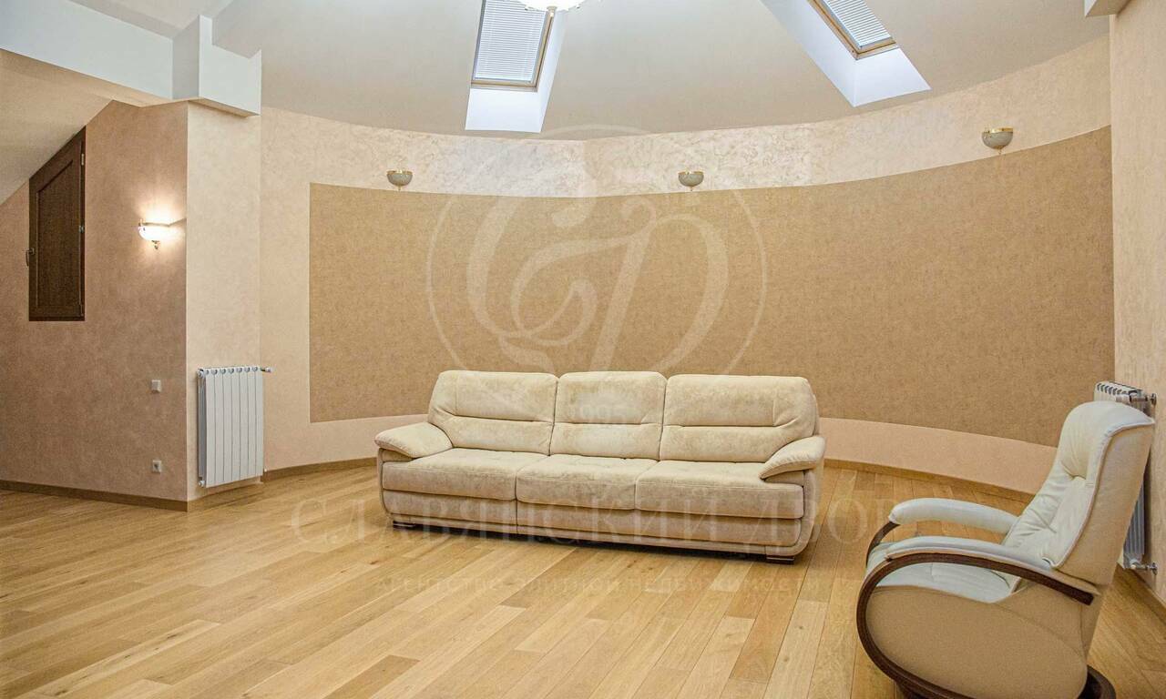 Второй этаж: просторный холл, четыре спальни, два санузла, кабинет, гардеробная, зимний сад. Мансардный этаж: гостиная, две гостевые спальни, домашний кинозал, санузел.