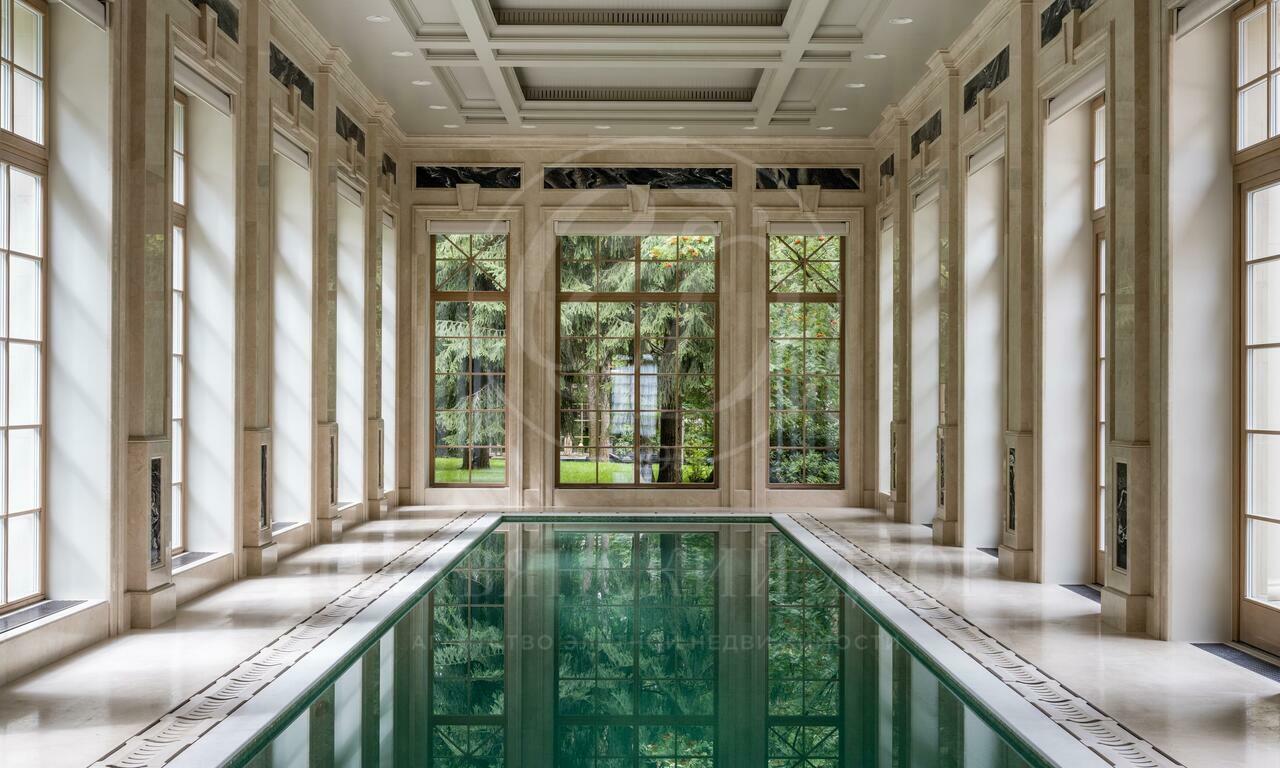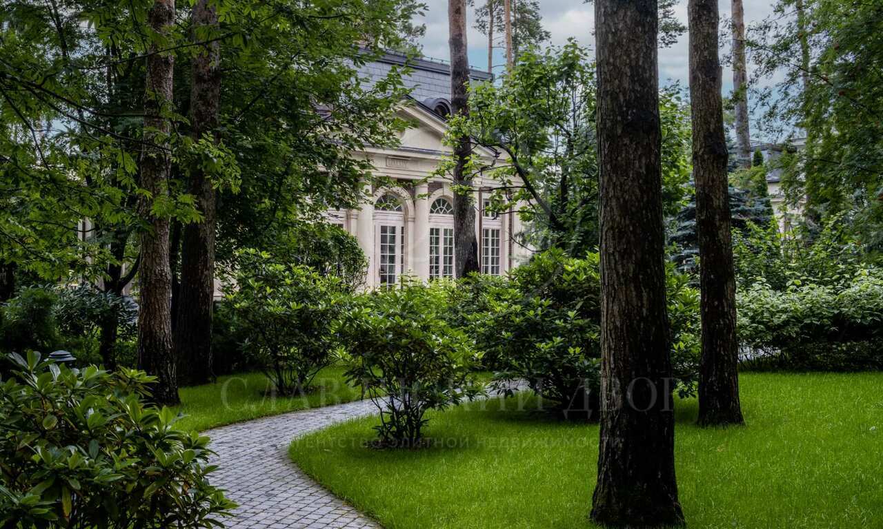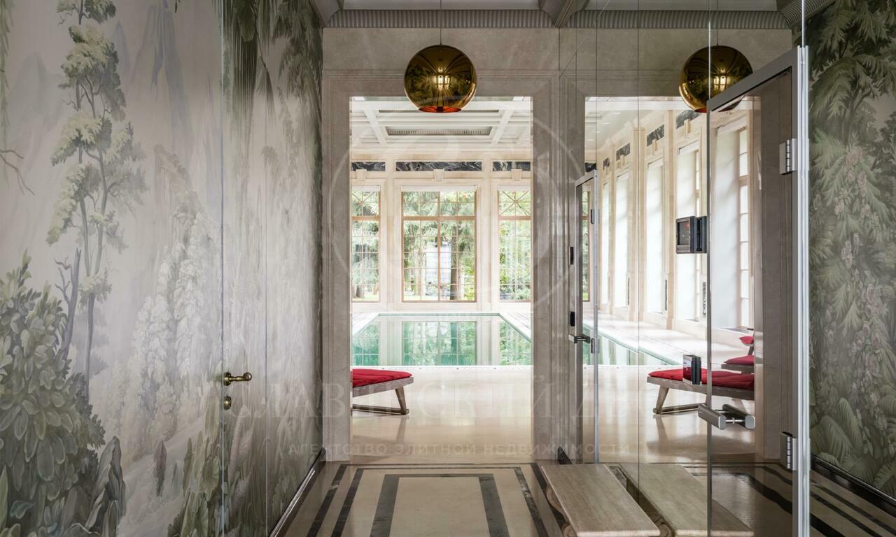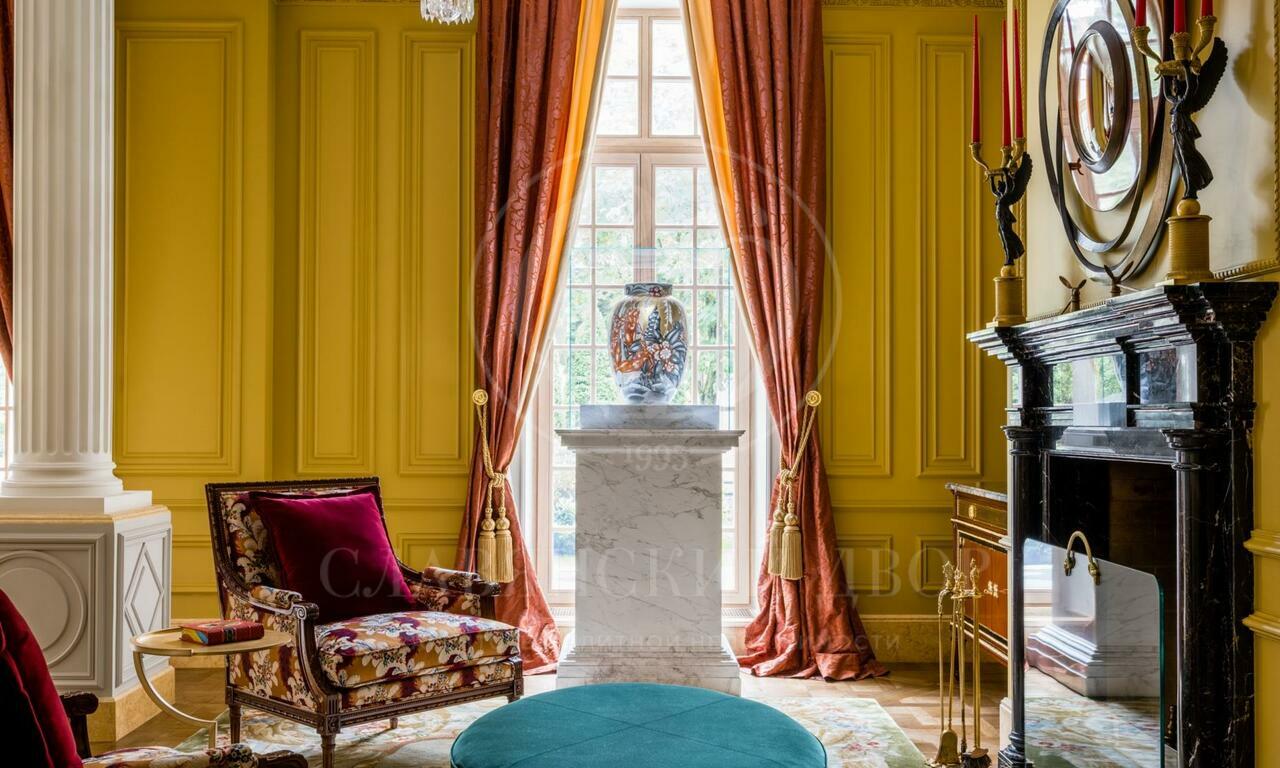 Резиденция в стиле французского шато на участке с сосновым лесом. Интерьеры выполнены под руководством Кирилла Истомина. В отделке использованы только эксклюзивные материалы: интерьерные краски Little Greene (Англия) и Argile (Франция), итальянские сорта мрамора премиум- Класса — Calacatta, Carrara, Statuario, паркет из редких пород дерева, встроенная мебель фабрики Luciano Zonta (Италия), люстры Saint-Louis (Франция) и Baccarat (Франция).