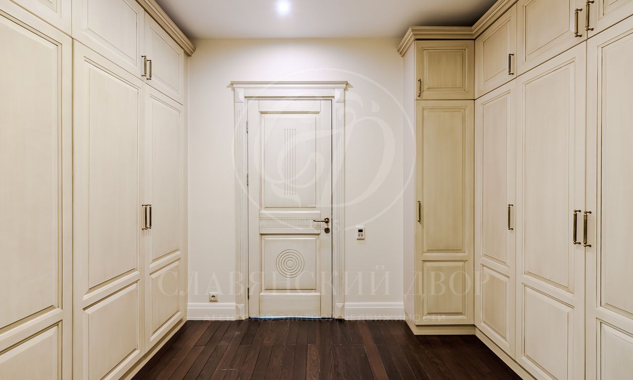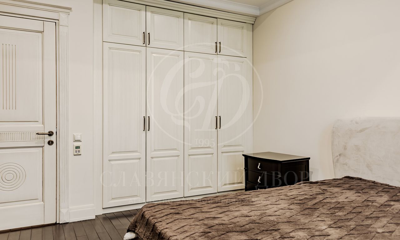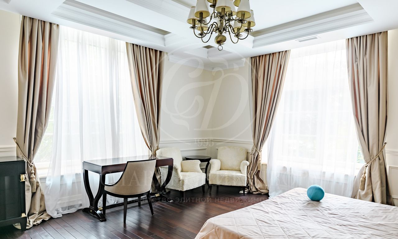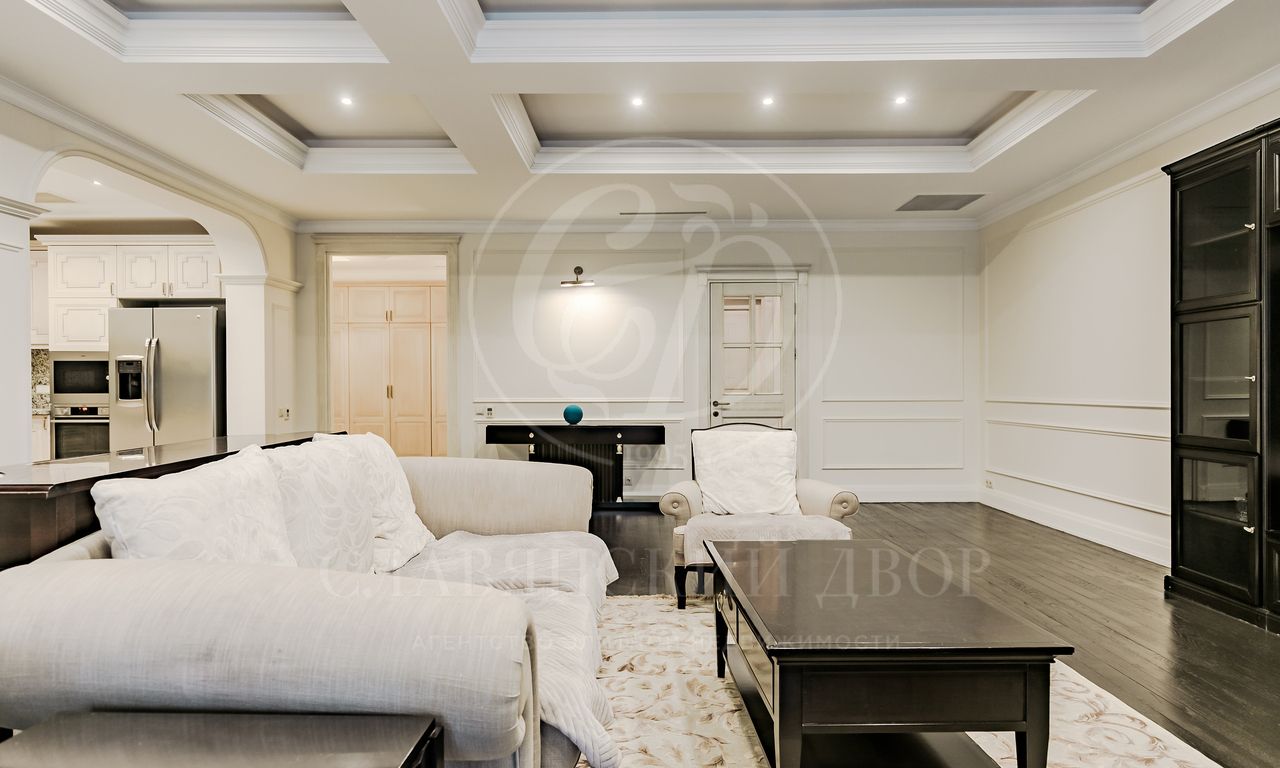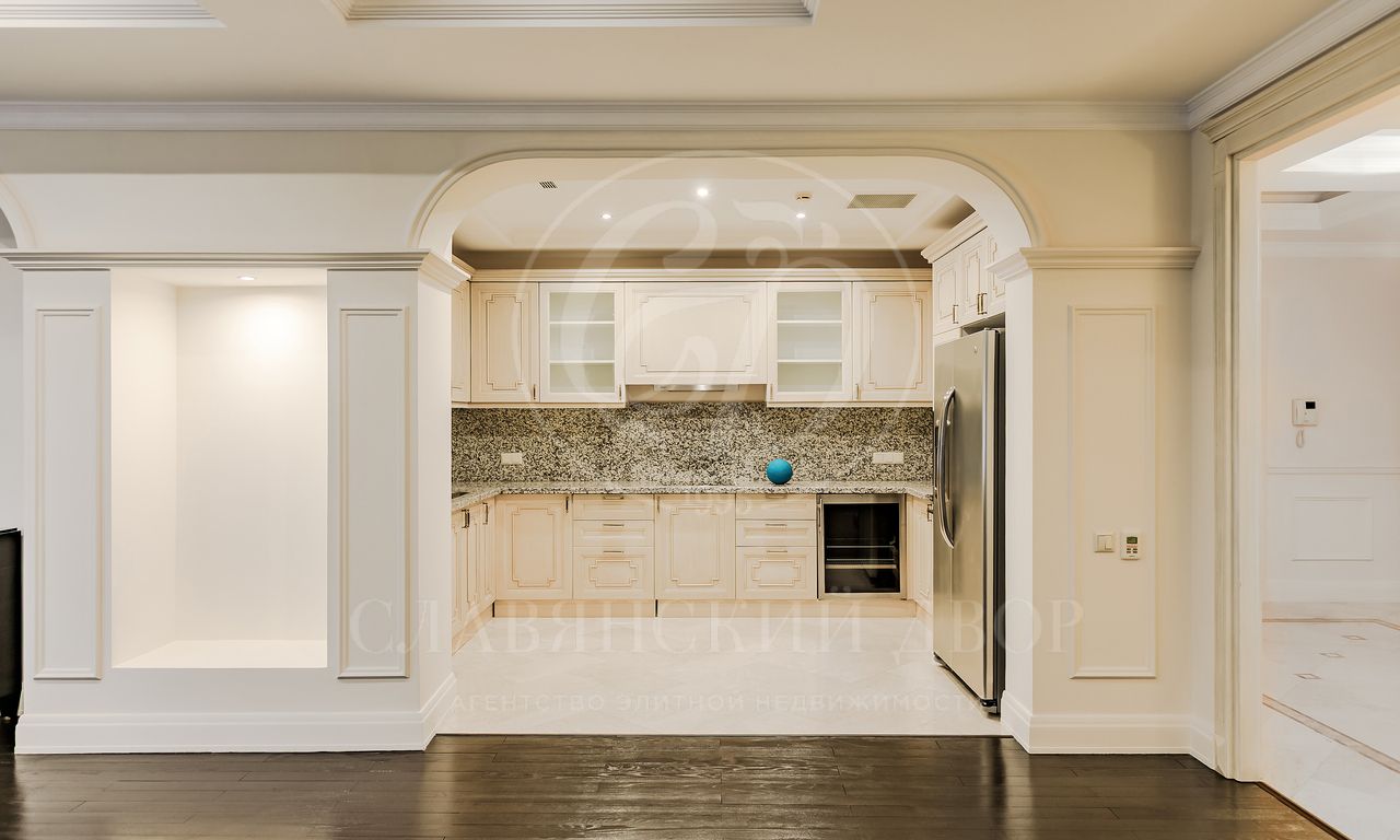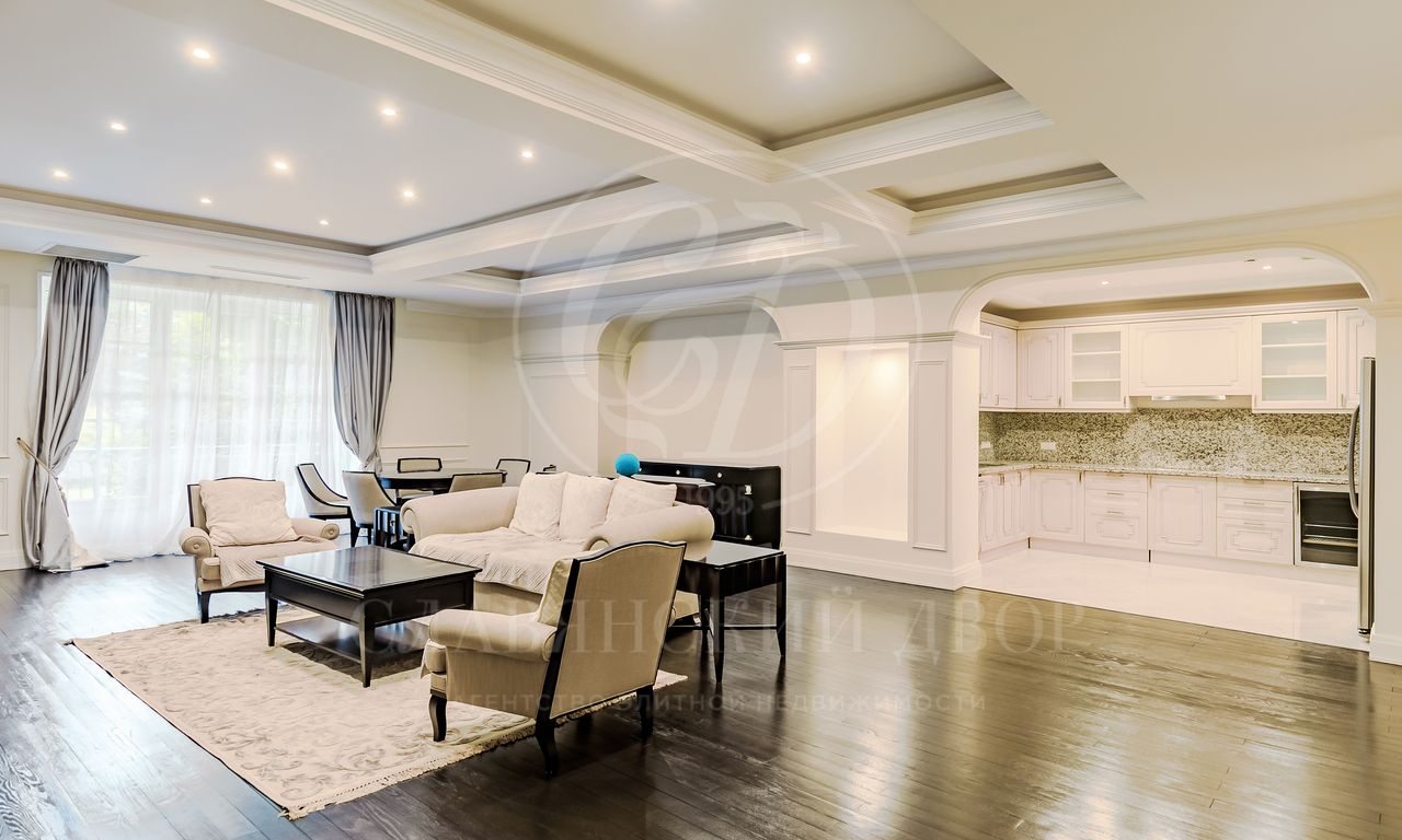 Отделка выполнена в классическом стиле с использованием качественных материалов иностранного производства. Мягкая мебель, аксессуары, светильники, кухонный гарнитур и обои привезены из Италии, Англии и США. Паркетная доска – массив ореха, полы на кухне и в прихожей – мрамор. Бытовая техника AEG (Германия); духовой шкаф, СВЧ, кофемашина, посудомоечная машина, варочная панель и винный шкаф Liebherr, холодильник фирмы Side-by-Side (США). Ванные комнаты отделаны мраморной плиткой с лазерной гравировкой, установлена сантехника Villeroy&Boch, испанские смесители, аксессуары — Devon&Devon.