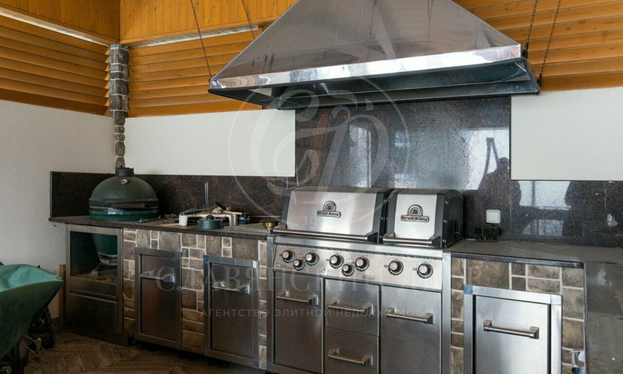 На участке выполнен ландшафтный дизайн, установлены системы автополива, освещение, дорожки, дренажная система, беседка, зона барбекю. По периметру высажены туи.