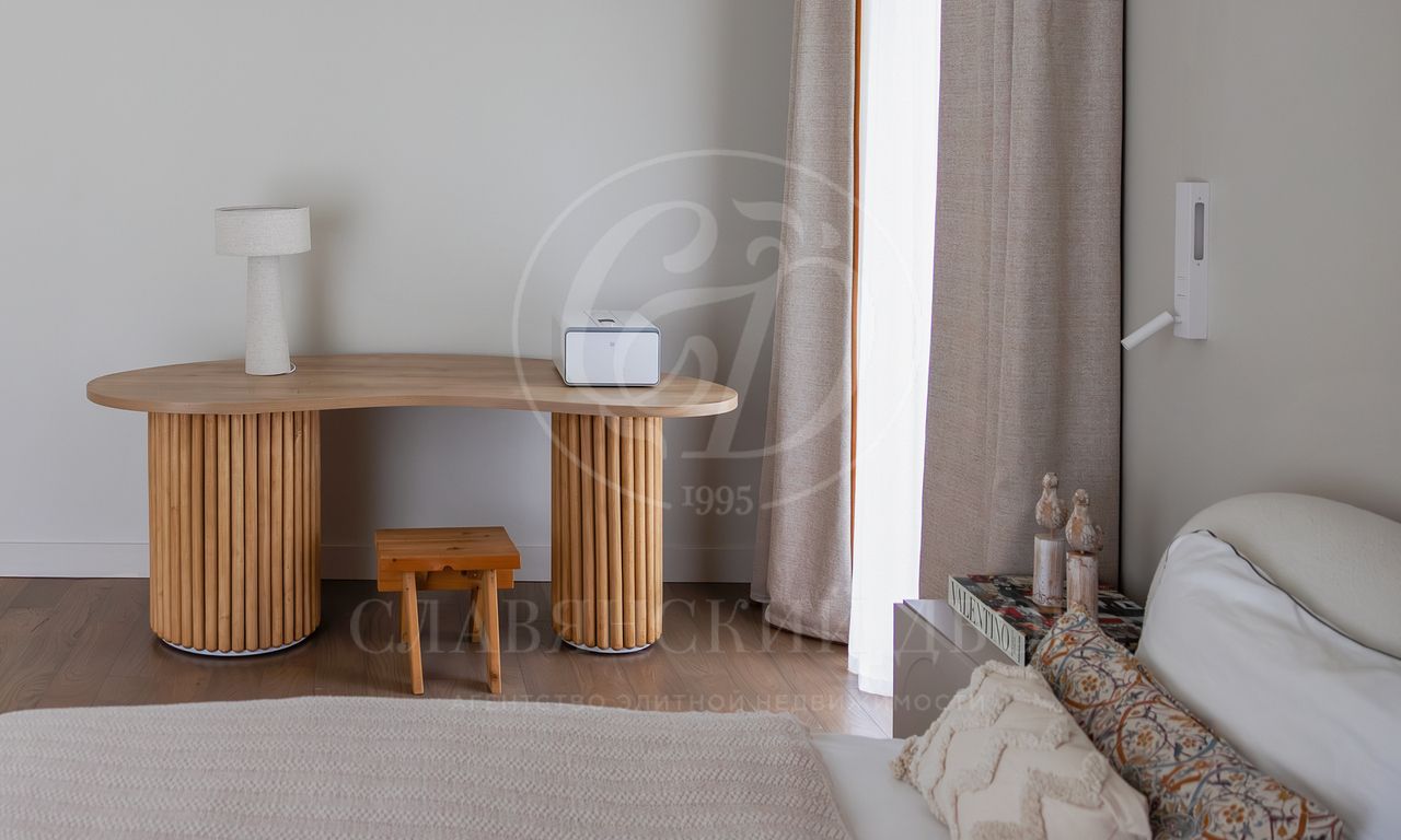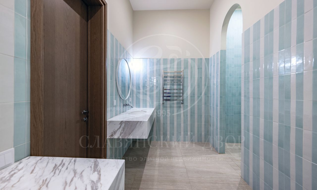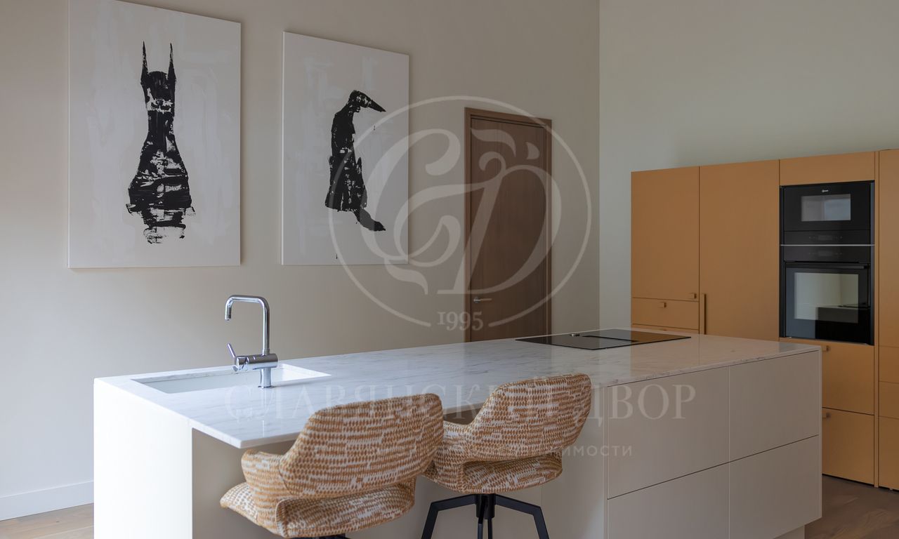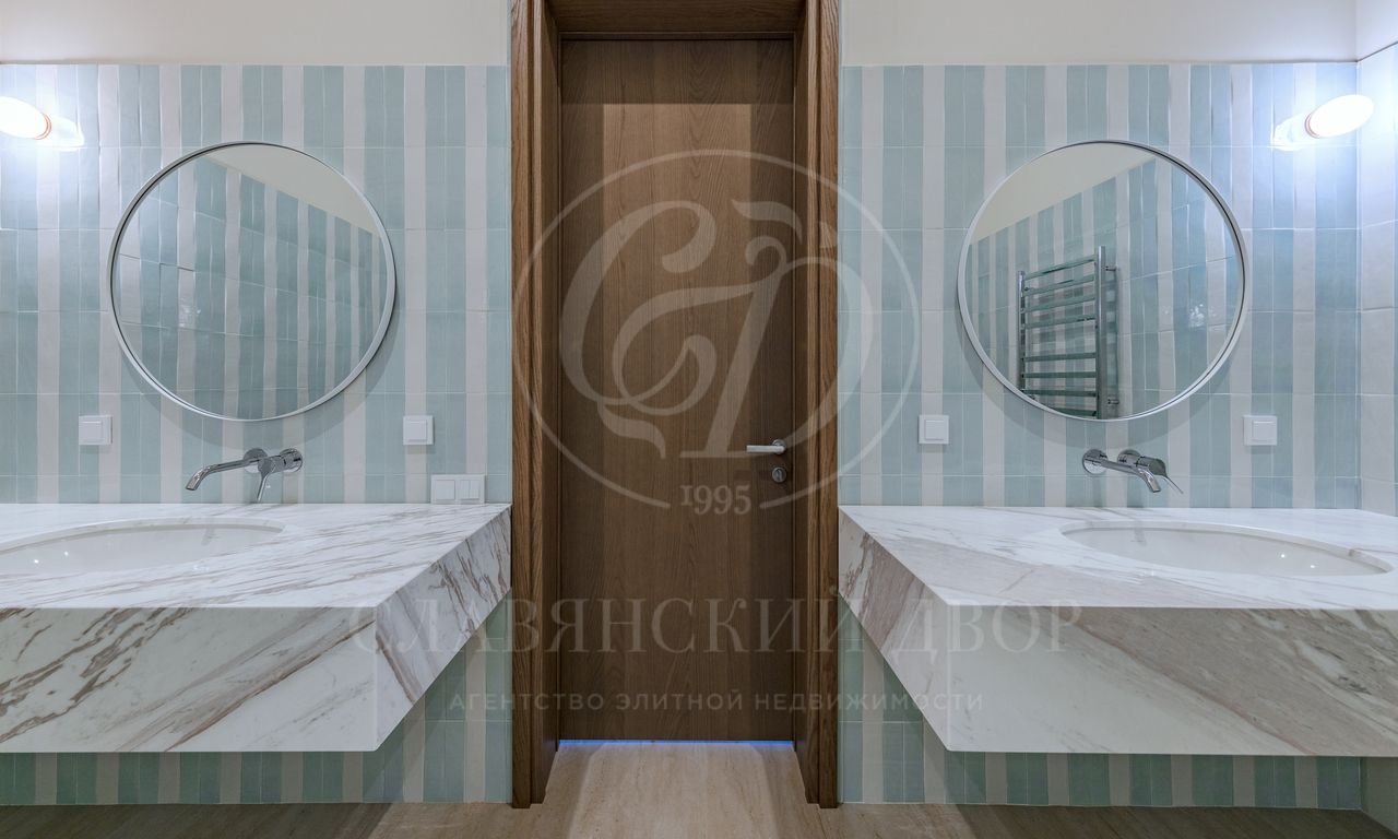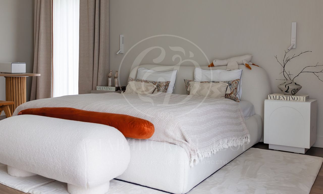 просторная гостиная-столовая с кухней и отдельной технической кухней, холл- галерея, гардеробные, 4 спальни — каждая со своим с/у и гардеробной, а также кабинет и игровая комната в двух уровнях.